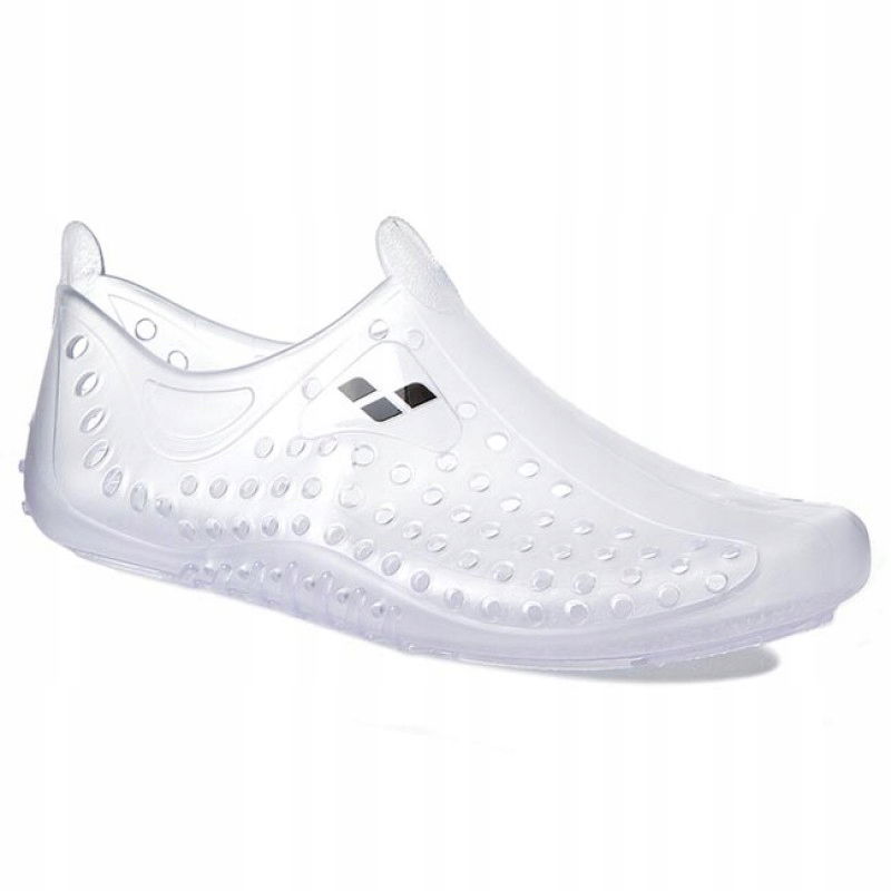 Buty do wody Arena Sharm 2 to specjalne obuwie do sportów wodnych, niezbędne podczas wakacyjnych szaleństw w morzu czy nad jeziorem, aby ochronić się przed skaleczeniem, spowodowanym nadepnięciem na ostry kamień, jeżowca czy fragment muszli. Są lekkie i niezwykle wygodne – wykonane zostały w całości z elastycznego, przyjemnego w dotyku PVC. Dzięki rozciągliwości materiału ich wkładanie i zdejmowanie nie sprawia żadnego problemu. Otwory wentylacyjne w cholewce zapewniają skórze możliwość swobodnego oddychania, a antypoślizgowa podeszwa daje pewność przyczepności do podłoża.