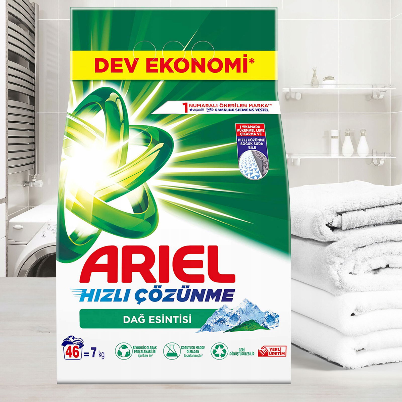 Idealny do codziennego prania, zarówno w niskich, jak i wysokich temperaturach, Ariel jest doskonałym wyborem do każdego rodzaju odzieży.