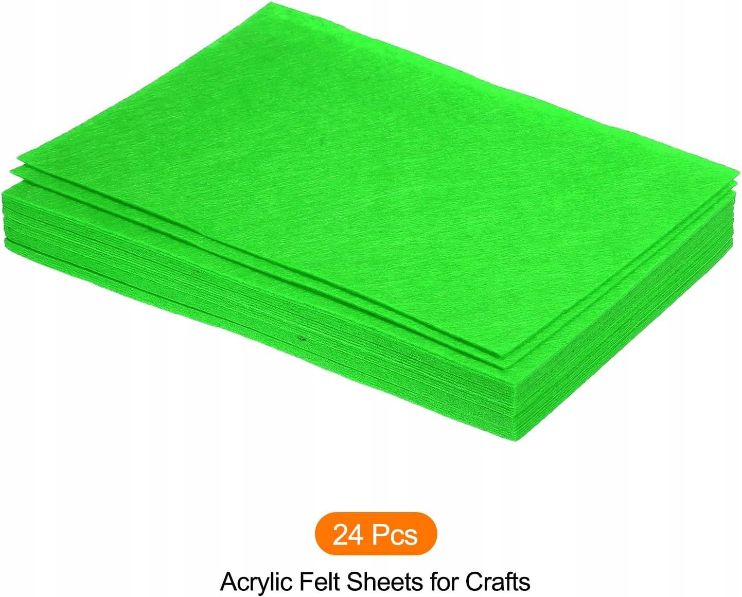 [Rozmiar]: Miękka filcowa tkanina ma wymiary: 30 cm x 20 cm (dł. x szer.); Grubość: 0,7 mm; Kolor: zielony; Materiał: Akryl; Opakowanie 24 arkuszy filcu akrylowego do prac ręcznych.