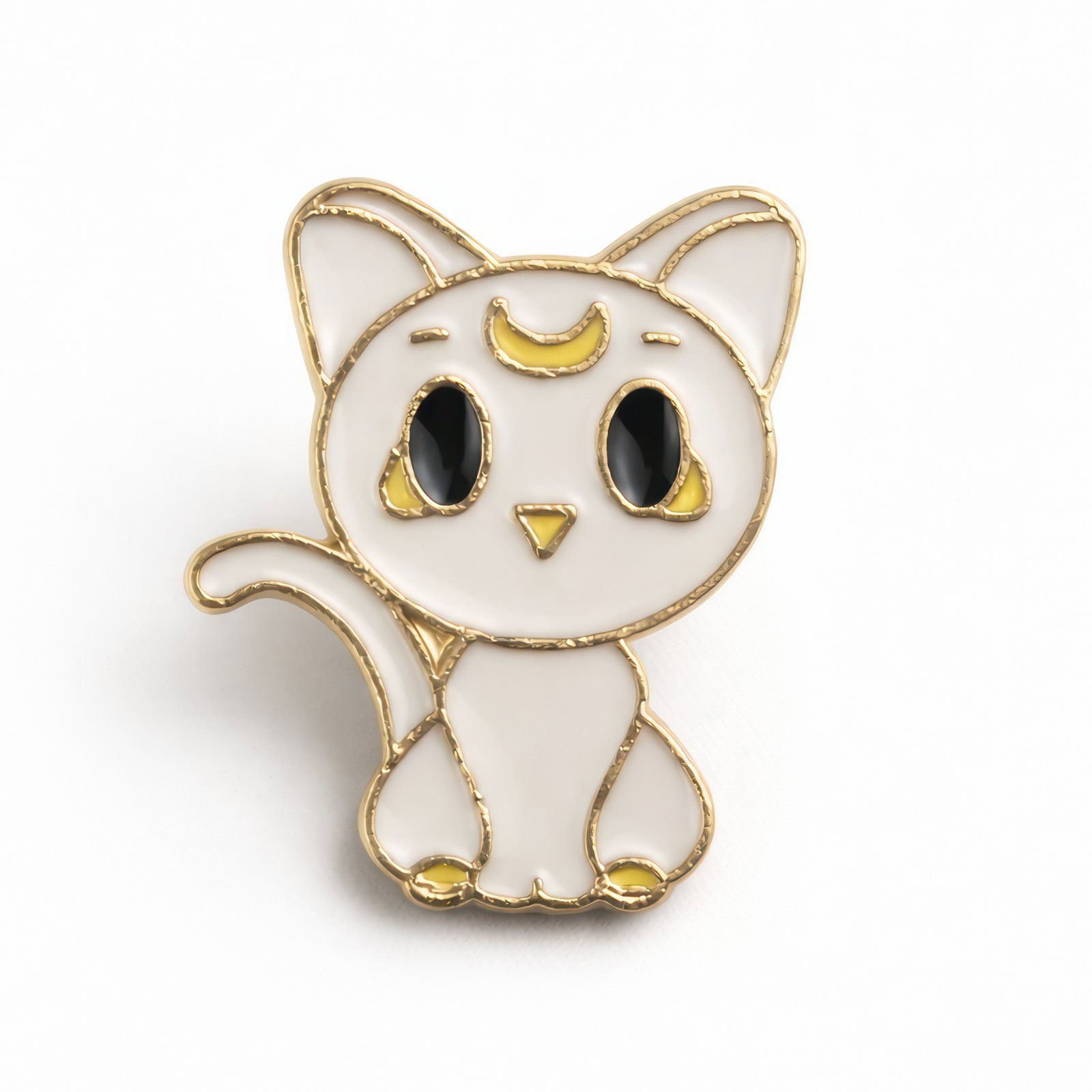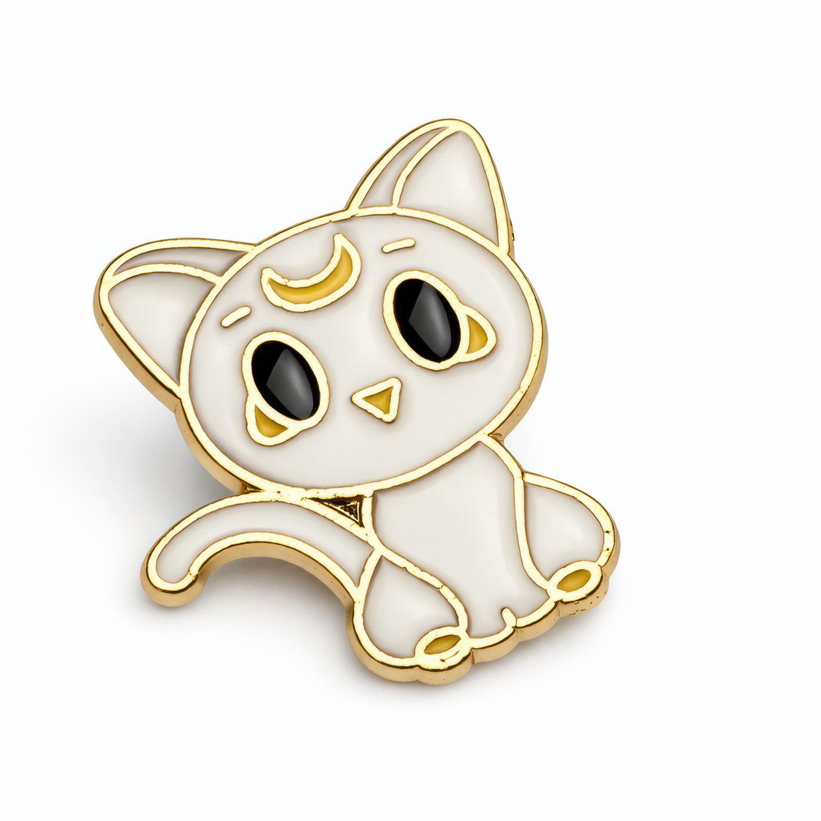 Poznaj Artemis, ukochaną kocicę-towarzyszkę z Sailor Moon! Ta 4-centymetrowa metalowa przypinka oddaje jej kultowy urok dzięki misternemu zdobieniu emalią – miękkie, białe futro, lśniące złote obrysy i delikatne księżyce w rogach na głowie. Jej duże, wyraziste czarne oczy z żółtymi akcentami i figlarna poza sprawiają, że jest to pozycja obowiązkowa dla fanów. Wykonana z wytrzymałego metalu, przypinka posiada gładkie, teksturowane dno i bezpieczne zapięcie, ułatwiające noszenie. Niezależnie od tego, czy przypniesz ją do kurtki, torby, czy dziennika, ten uroczy dodatek wprowadzi odrobinę magii Królestwa Księżyca do Twojej codziennej stylizacji.
