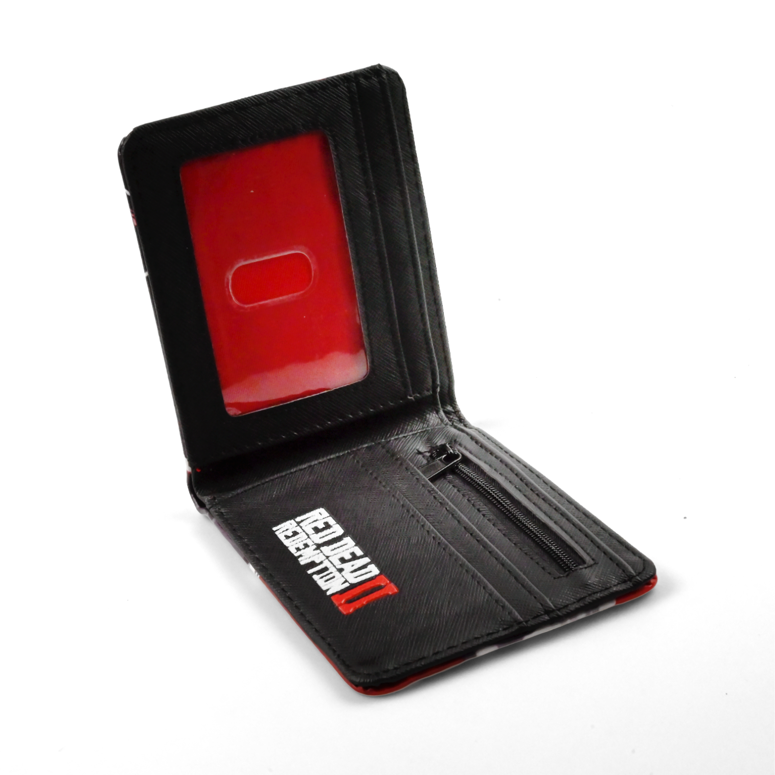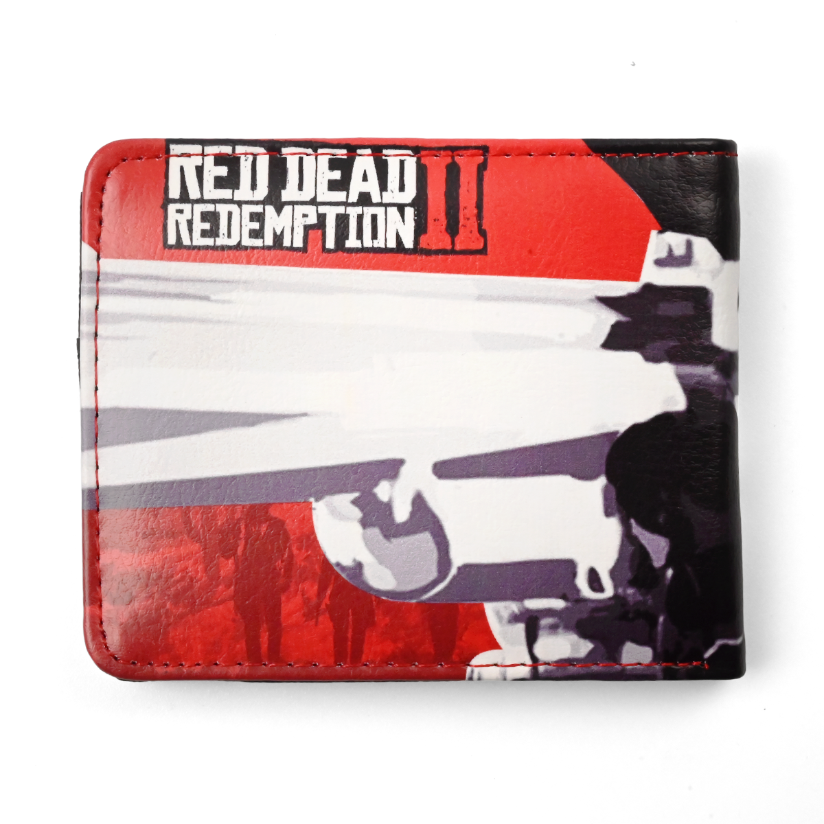Wyrusz w drogę z najsłynniejszym banitą Dzikiego Zachodu — portfel Arthur Morgan to esencja upalnego, westernowego klimatu. Z zewnątrz dominuje mocna, filmowa grafika: przenikliwe spojrzenie Arthura w odcieniach czerwieni i czerni, z wyraźnym konturem. Na tylnej stronie szeroka sylwetka rewolweru i charakterystyczny napis na ognistym tle. Gładka, półbłyszcząca skóra ekologiczna z delikatną fakturą, a po krawędziach równe czerwone przeszycia. W środku czarne panele, czerwone okienko na dokument, kilka przegródek na karty i wąska kieszonka na suwak — praktyczny, 13-centymetrowy bifold, który łatwo zmieścisz w kieszeni kurtki. Jako gadżet oddaje klimat plakatów i ognisk gangu Van der Linde. Trwała skóra ekologiczna dobrze leży w dłoni, więc sprawdzi się na co dzień, do cosplayu albo do kolekcji w westernowym stylu. Gotowy do podarowania, noszenia i pokazywania na każdej „przejażdżce”.