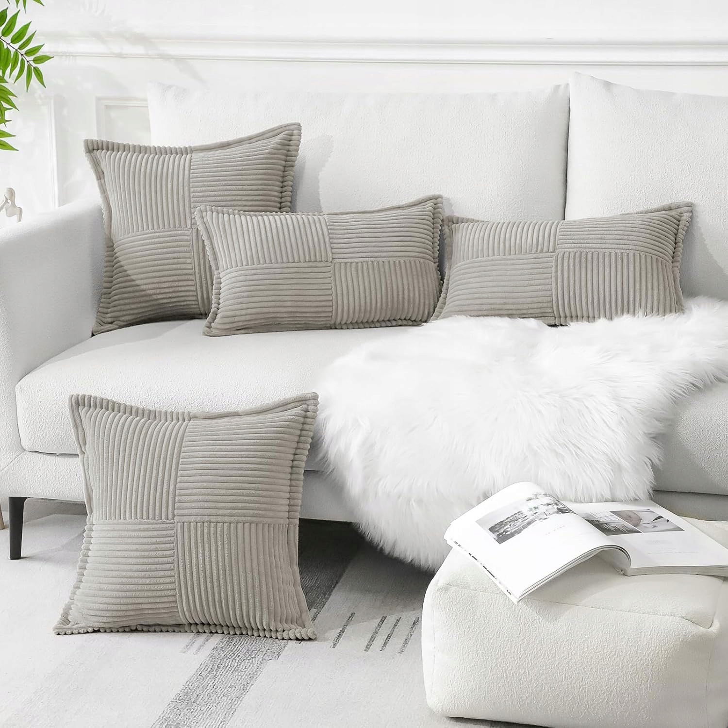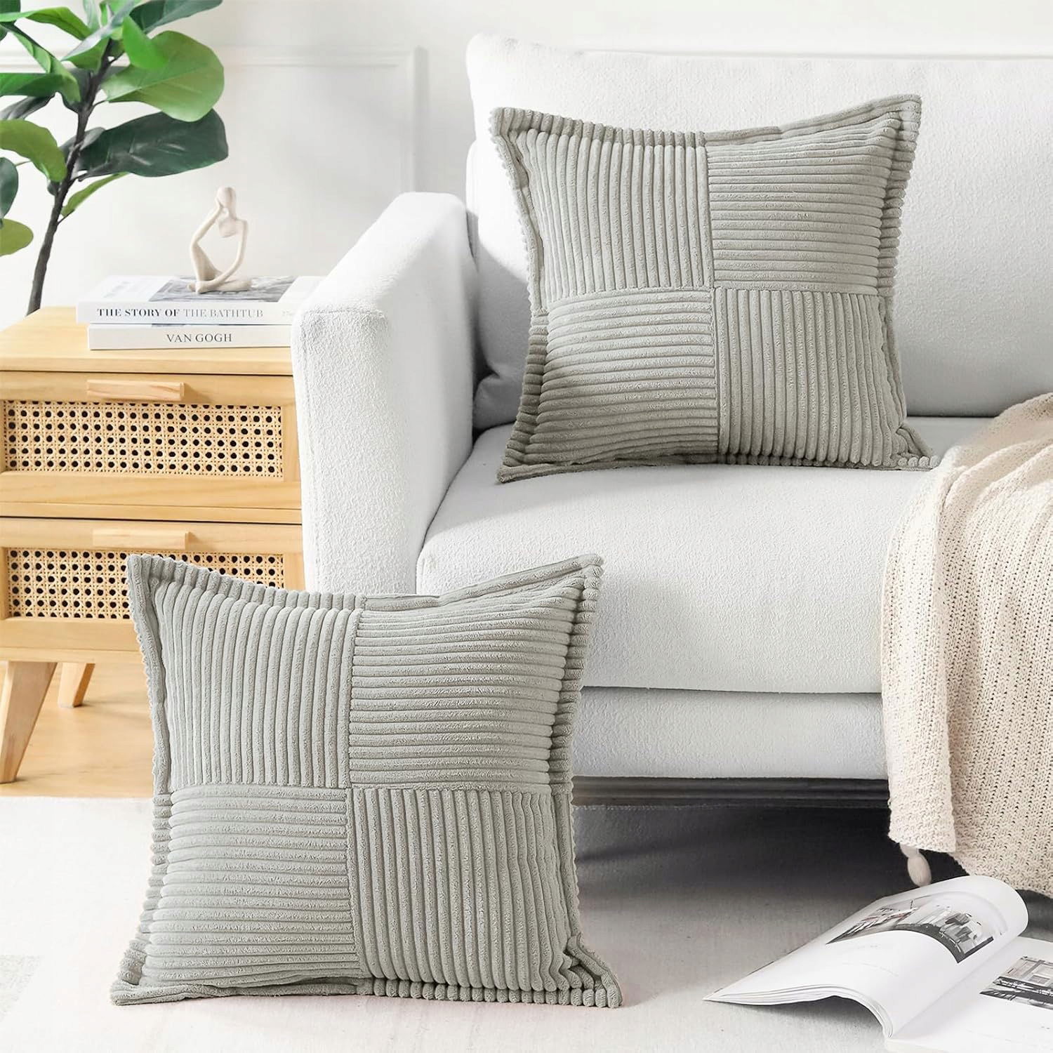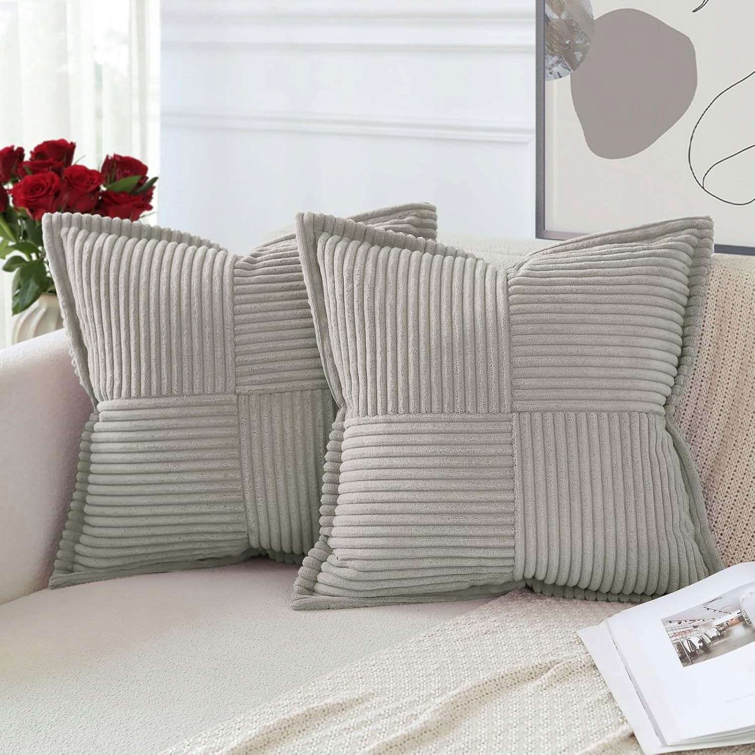 Artscope Corduroy Poszewki na poduszki Zestaw 2 nowoczesnych poszewek na poduszki Patchwork Miękka poszewka na poduszkę Dekoracyjne poduszki o fakturze bocznej do wystroju domu Sofa Sypialnia Kanapa Cappuccino 40x40cm