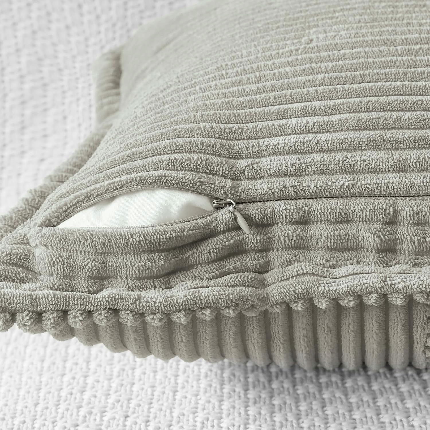 - UNIKALNY PROJEKT: Każda poszewka na poduszkę ma delikatną dwustronną teksturę w paski i wzór krzyżykowego przeszycia po jednej stronie, modny i piękny, który doda Twojemu pokojowi delikatnego i eleganckiego akcentu. Gładki, ukryty zamek błyskawiczny.
