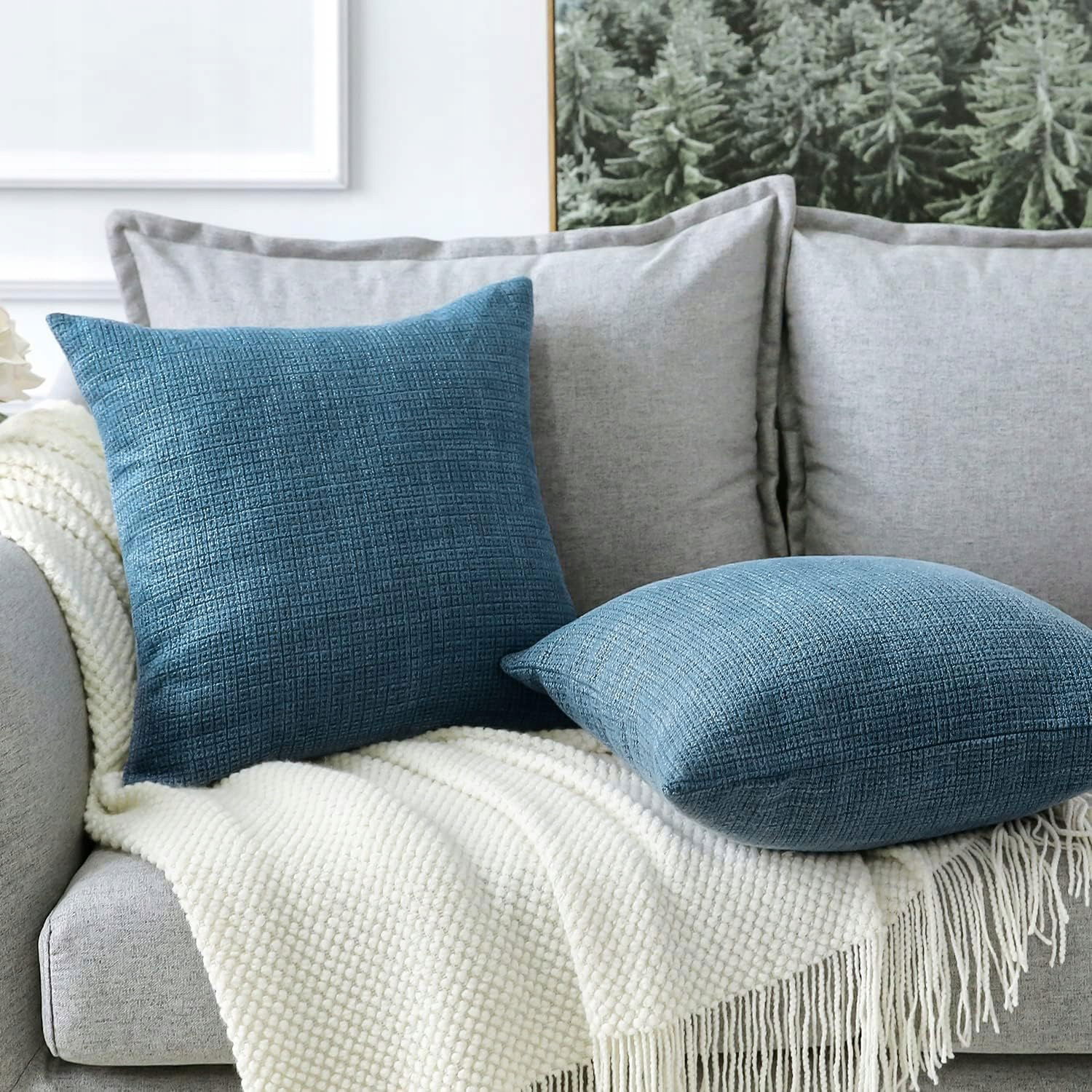 Zestaw 2 dekoracyjnych poszewek Artscope 45x45 cm. Wykonane z wysokiej jakości lnu, w eleganckim niebieskim kolorze. Idealny na sofę, do sypialni lub samochodu. Proste, nowoczesne wzornictwo w stylu minimalistycznym. Możesz prowadzić utrzymanie czystości.