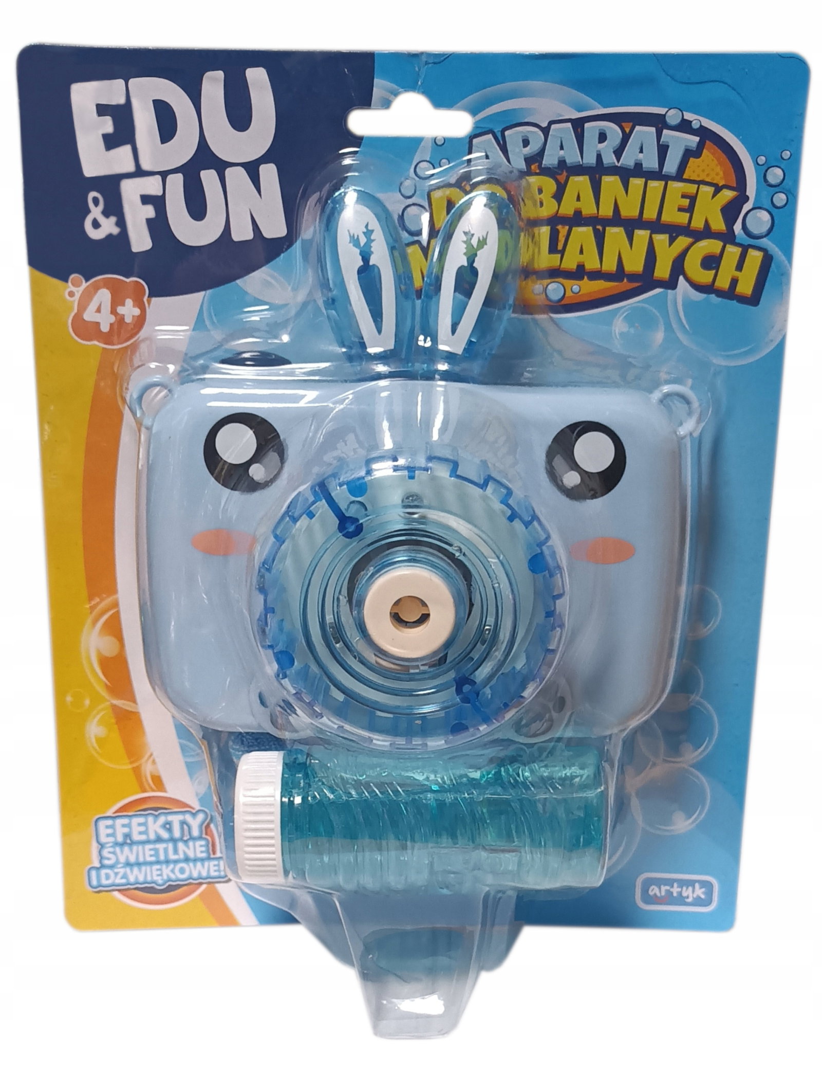 Uroczy aparat fotograficzny z efektami dźwiękowymi i świetlnymi przypadnie do gustu każdemu dziecku, które uwielbia bańki mydlane.