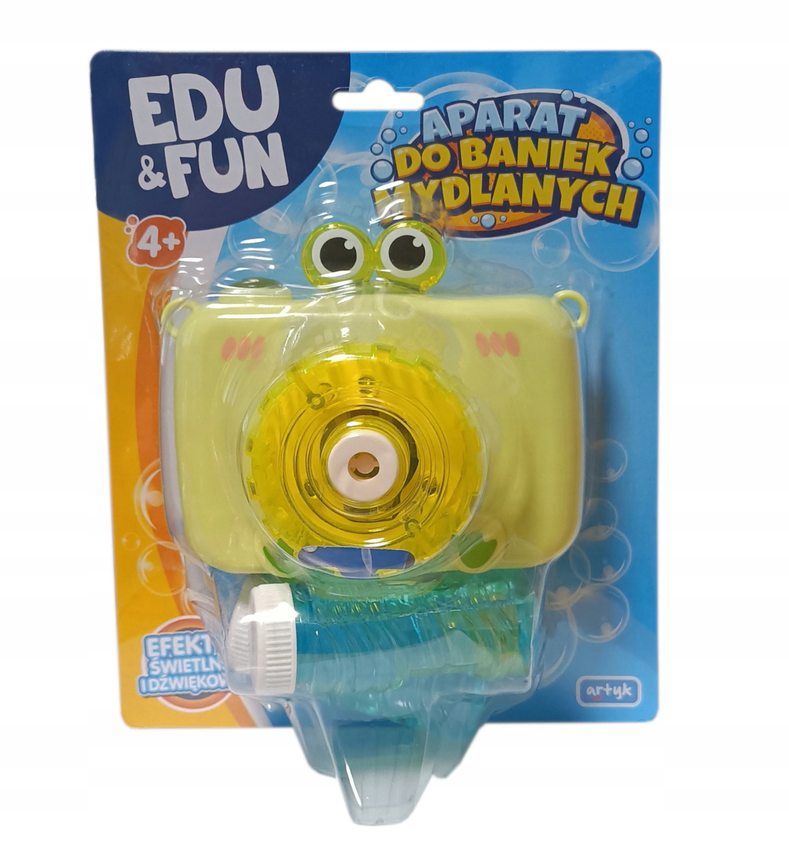 Uroczy aparat fotograficzny z efektami dźwiękowymi i świetlnymi przypadnie do gustu każdemu dziecku, które uwielbia bańki mydlane.