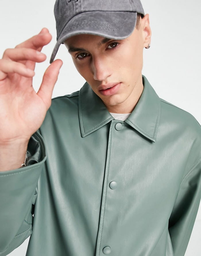 ASO DESIGN Szałwiowy płaszcz imitacja skóry (XS)