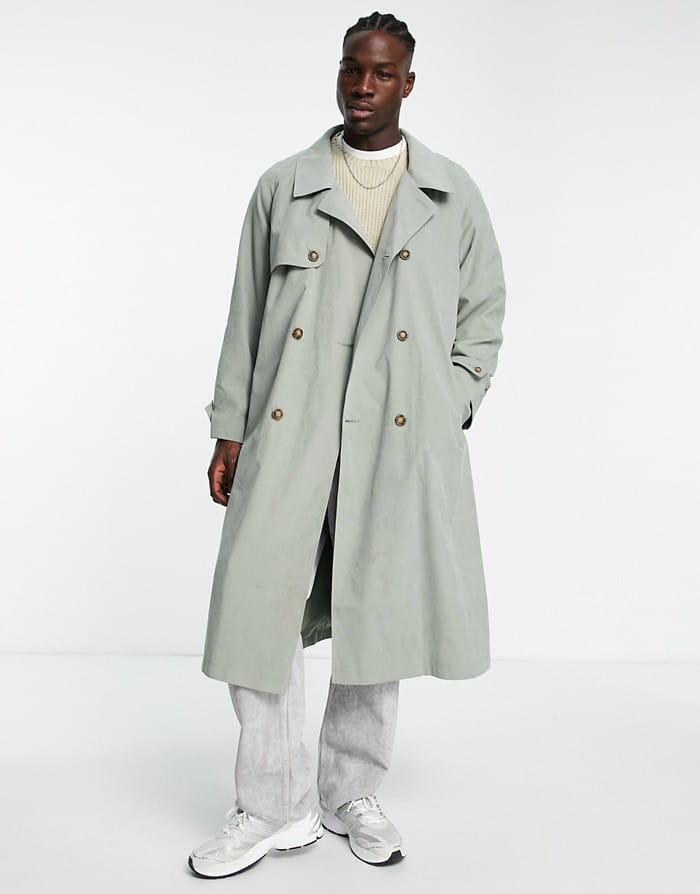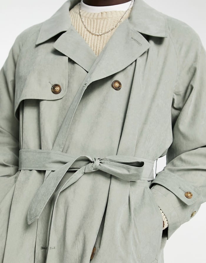 ASO DESIGN Szałwiowy płaszcz oversize pasek (L)
