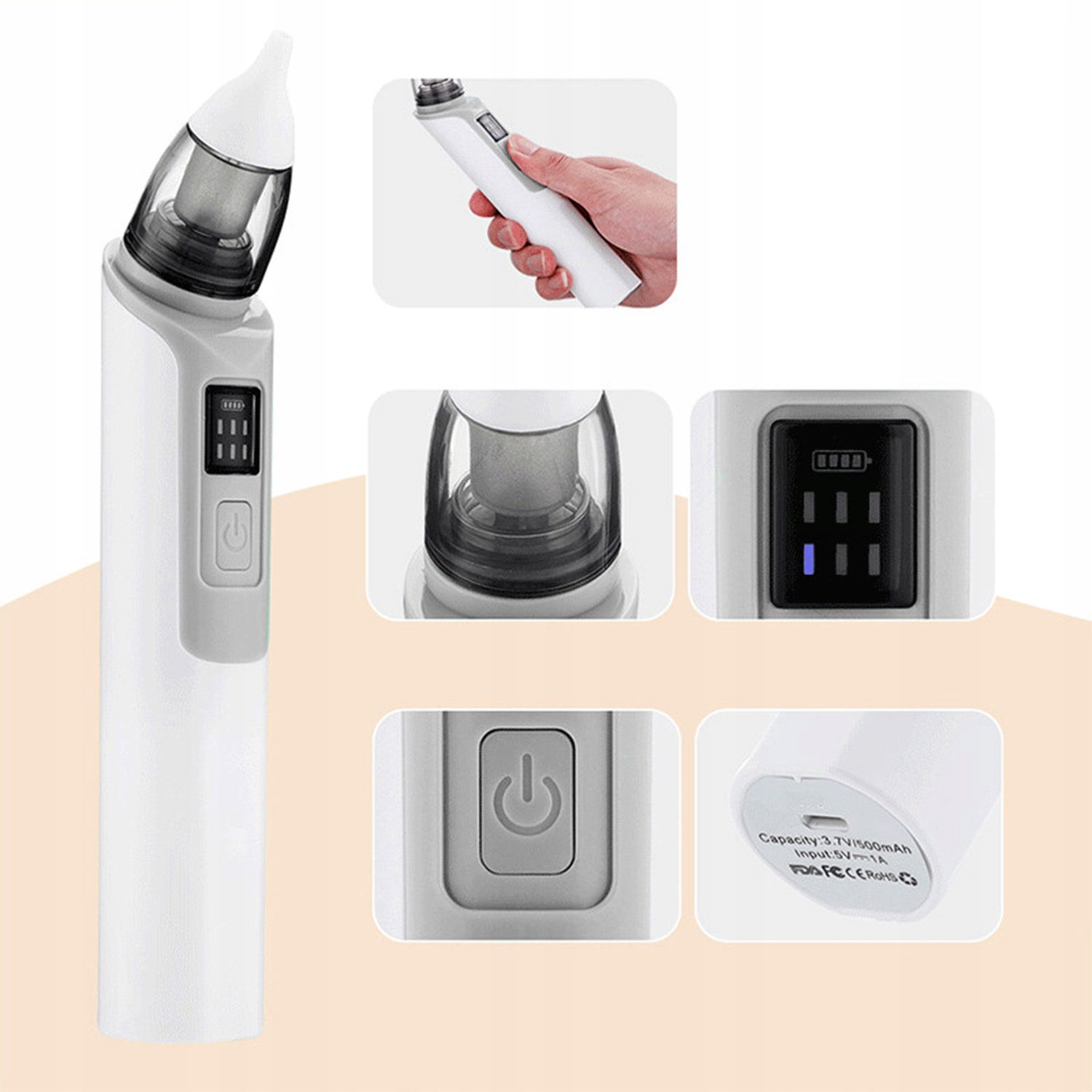 ✅6 poziomów mocy ssania. Dzięki nim dostosujesz moc odsysania do każdego nosa – zarówno małego jak i dużego!