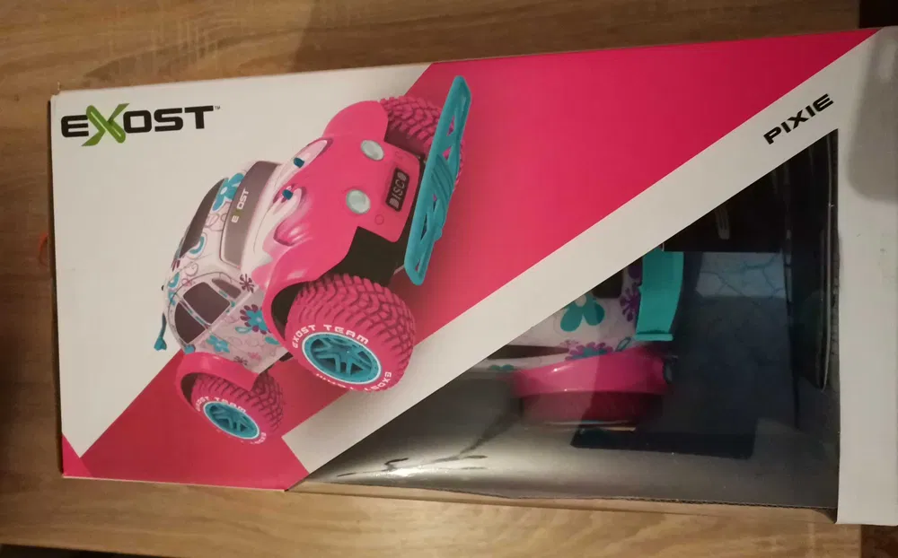 To retro autko w wesołych kolorach skrywa pod maską prawdziwą moc! Jego zwrotne opony pozwalają mu jeździć we wszystkich kierunkach i to po najróżniejszych nawierzchniach. To retro autko w wesołych kolorach skrywa pod maską prawdziwą moc! Jego zwrotne opony pozwalają mu jeździć we wszystkich kierunkach i to po najróżniejszych nawierzchniach.Wykonuj najfajniejsze akrobacje uroczym i kolorowym zdalnie sterowanym samochodzie Pixie Buggy firmy Exost! To retro autko skrywa pod maską prawdziwą moc! Błyskawiczne przyspieszenie można kontrolować za pomocą pilota radiowego na odległość 30 metrów i może osiągnąć prędkość 8 km/h. Jego zwrotne opony pozwalają mu jeździć we wszystkich kierunkach i to po najróżniejszych nawierzchniach. Dzięki łatwemu w obsłudze pilotowi. możesz sterować Pixie we wszystkich kierunkach: do przodu. wstecz. lewo i prawo. Z przodu pojazdu umieszczony jest specjalny amortyzator, chroniący maskę przed zderzeniem z przeszkodą. Samochód posiada zdejmowaną karoserię i jest zasilany bateryjnie. Specyfikacja: