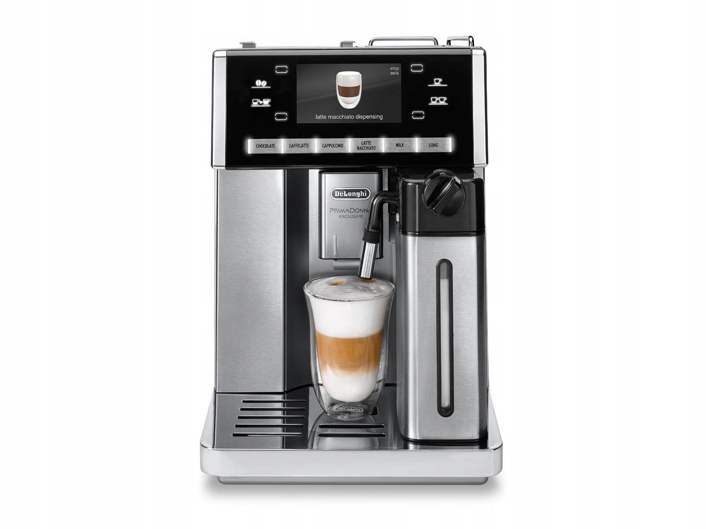 - Wystarczy jedno dotknięcie, aby uzyskać pyszną kawę cappuccino, caffelatte, latte macchiato lub gorące mleko.