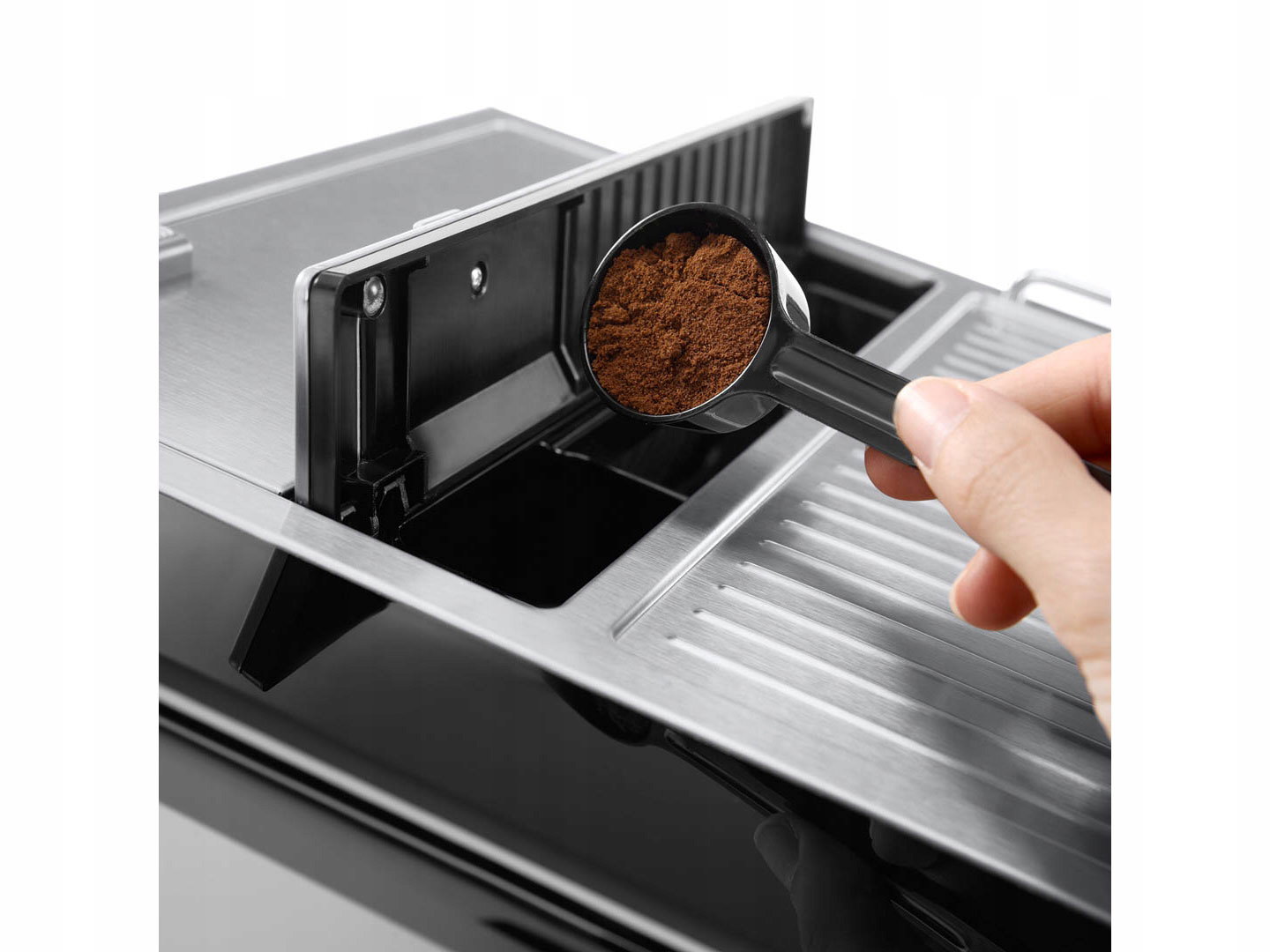 - Ekspresy De’Longhi nie tylko przygotowują wymarzoną kawę ze świeżych ziaren za jednym dotknięciem przycisku, ale również zapewniają możliwość przyrządzenia naparów z wykorzystaniem kawy mielonej.