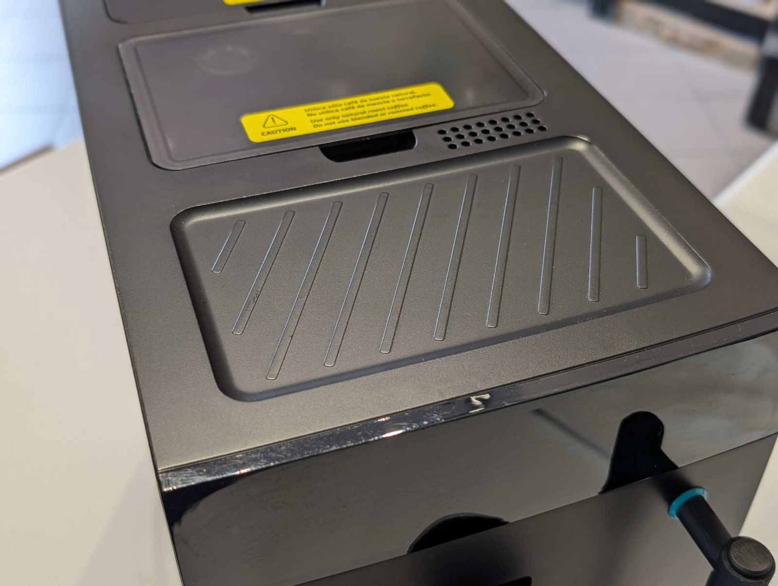 ekspres przeszedł wstępne czyszczenie lecz może nadal posiadać elementy poprzedniego użytkowania zalecamy przed wykonaniem pierwszej kawy również osobiście wykonać delikatne czyszczenie oraz przepuścić wodę lub nawet kawę przez ekspres.