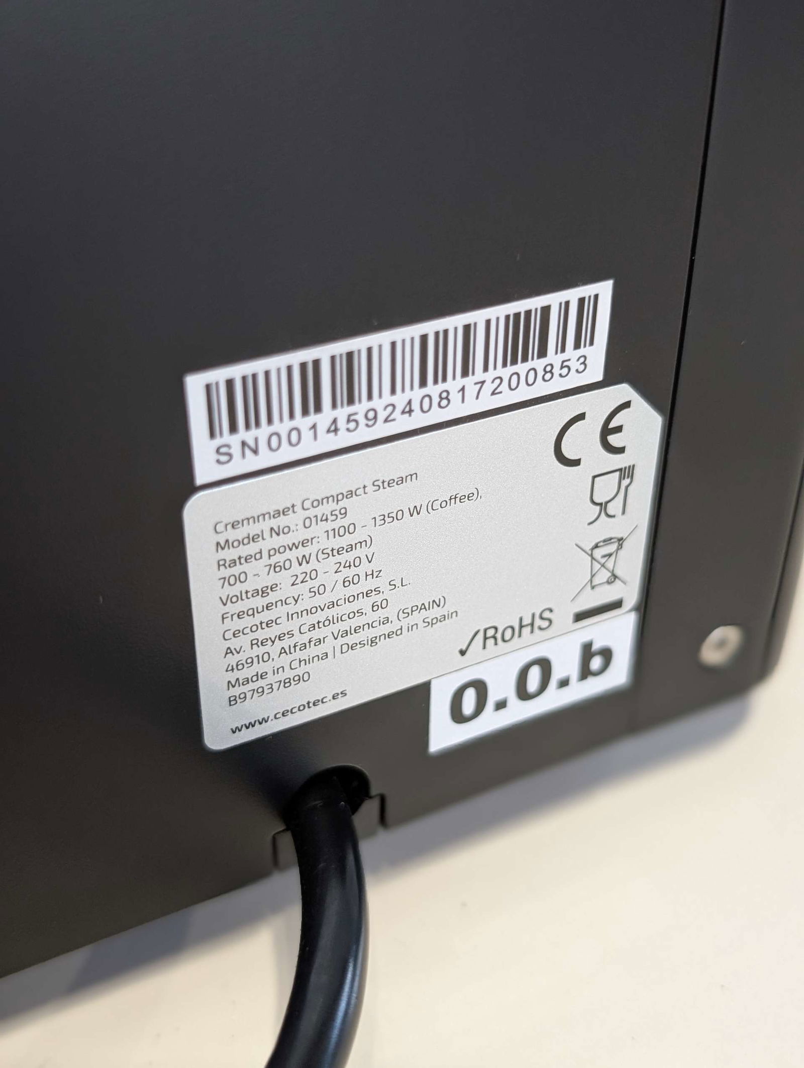 Automatyczny Ekspres Cecotec Cremmaet Compact Steam 1350W 19 Bar Czarny