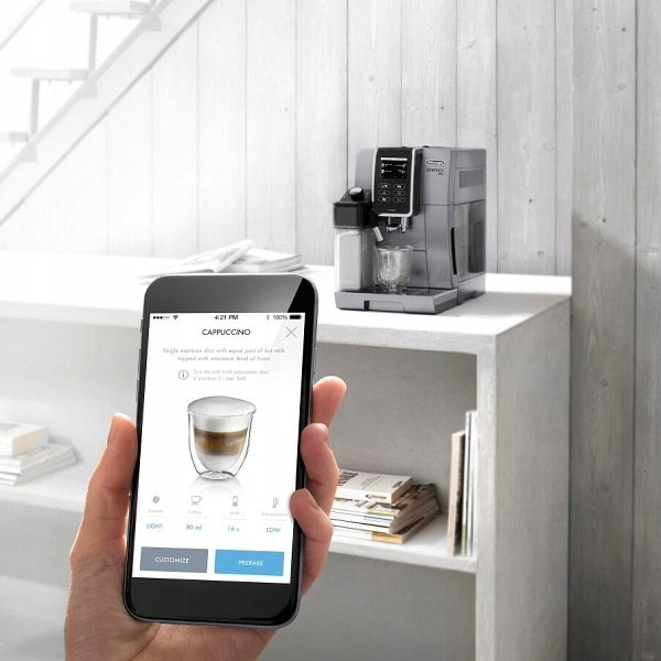 Ekspresem można również sterować za pomocą aplikacji „De’Longhi Coffee Link“. Twórz napoje i reguluj ich ustawienia prosto z Twojego inteligentnego urządzenia. Inteligentna aplikacja dostarcza użytkownikom wskazówek i sugestii związanych z konserwacją ekspresu do kawy.