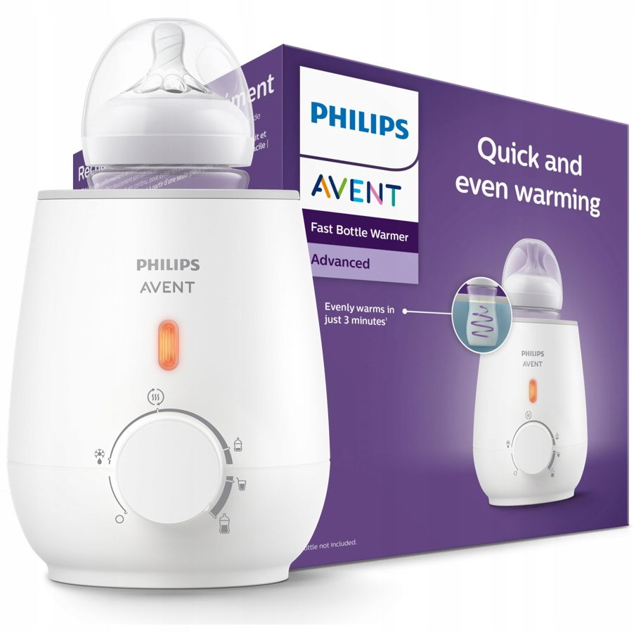 Elektryczny podgrzewacz do butelek Philips Avent podgrzeje mleko (150ml) w zaledwie 3 minuty. Równomierne podgrzewanie z cyrkulacją pokarmu zapobiega powstawaniu wysp goracego pokarmu, dzięki czemu zapobiega poparzeniom.