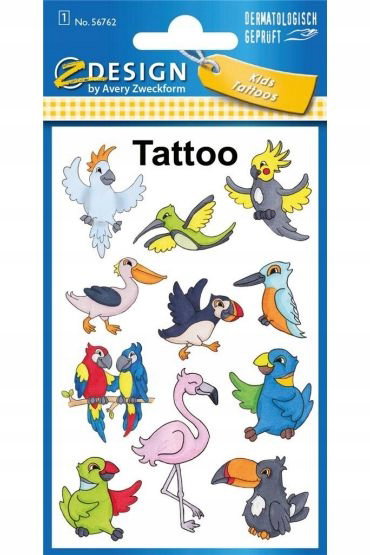 Opakowanie zawiera 11 sztuk tatuaży, folia do tatuażu, motyw ptaszków. Tymczasowy, niedrażniący, wodoodporny tatuaż na skórze. Opakowanie zawiera 1 arkusz ilustrowanych tatuaży.