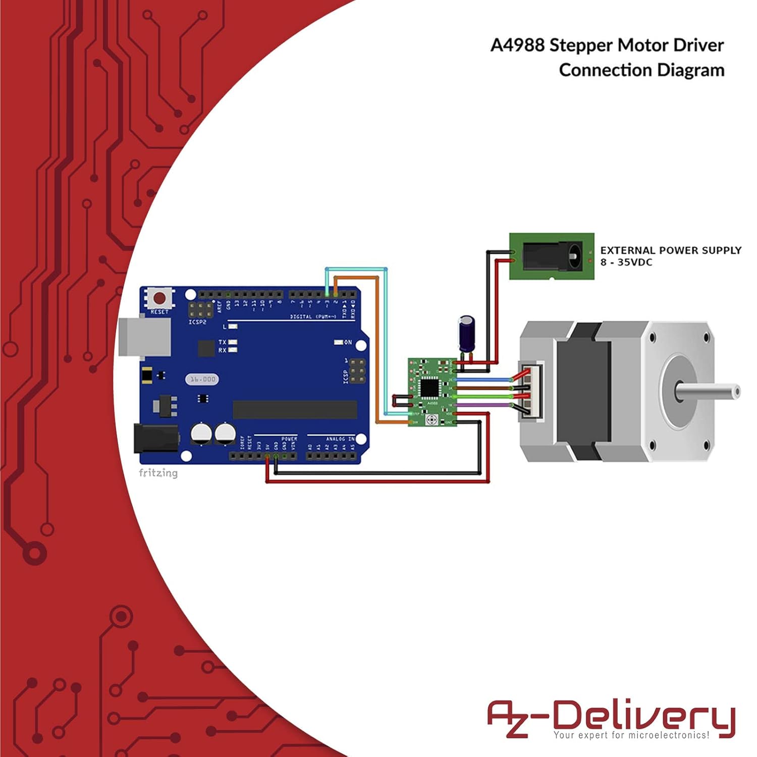 AZDelivery Moduł sterownika silnika krokowego Arduino 5 x A4988