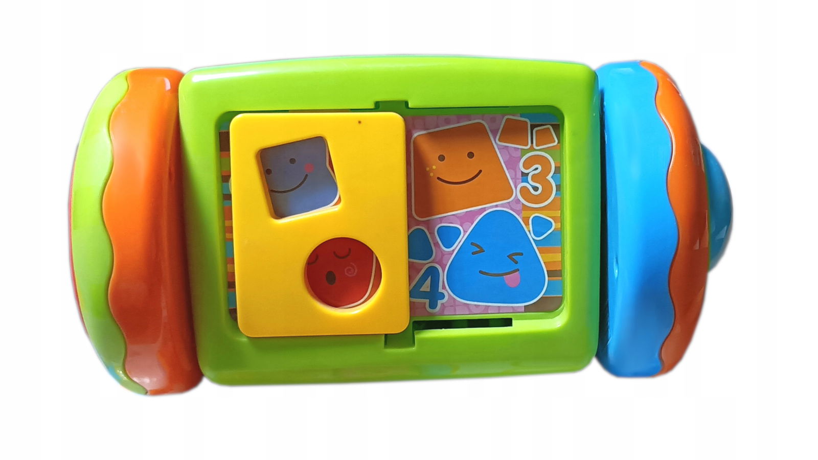 Poznaj pierwsze kształty i cyferki wspólnie z małpką bebe i jej przyjaciółmi. Zabawka wyposażone w kolorowe ekrany obraca się na bocznych kółkach i można turlać ją po podłodze.