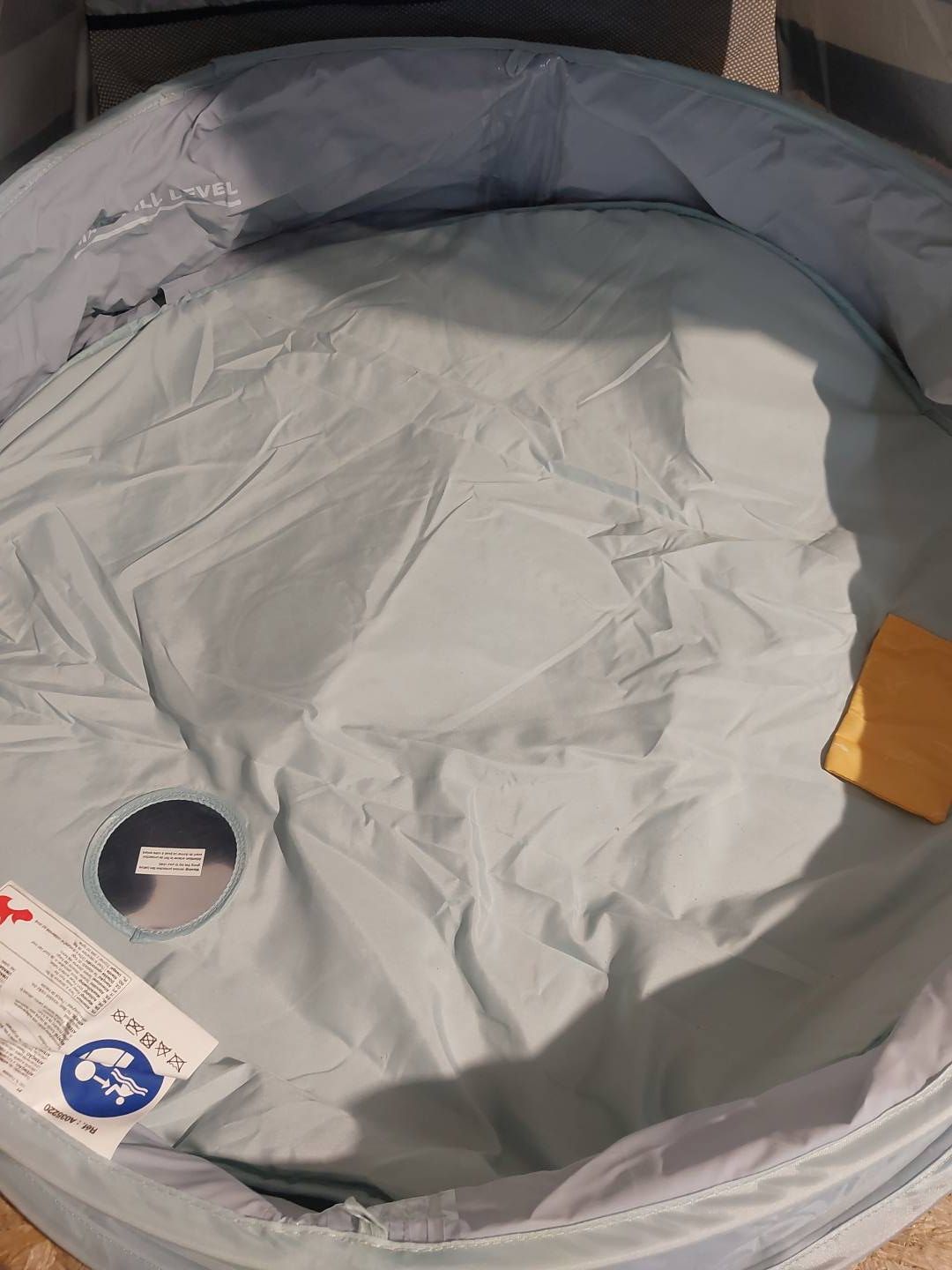 Dzięki wodoodpornej tkaninie Aquani zamienia się w brodzik, wystarczy wyjąć miękką matę i nalać wodę. Namiot bardzo szybko się składa i rozkłada dzięki systemowi pop-up, dzięki dołączonej torbie możemy z łatwością zabrać go wszędzie ze sobą.
