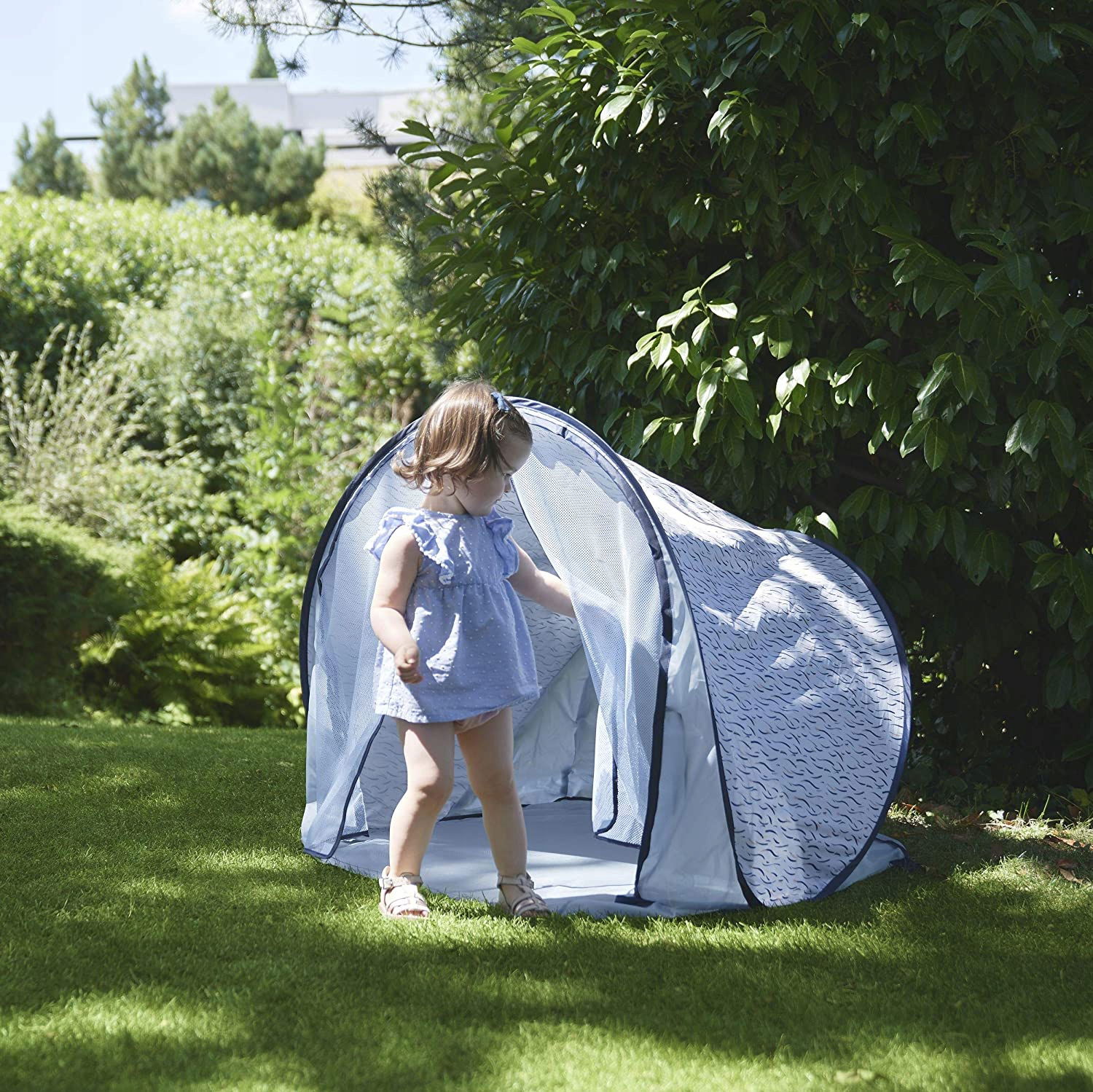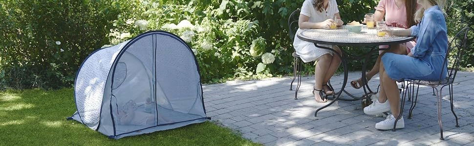 Namiot chroniący przed promieniowaniem UV Babymoov Blue Waves filtruje do 99% promieni UVA i UVB.