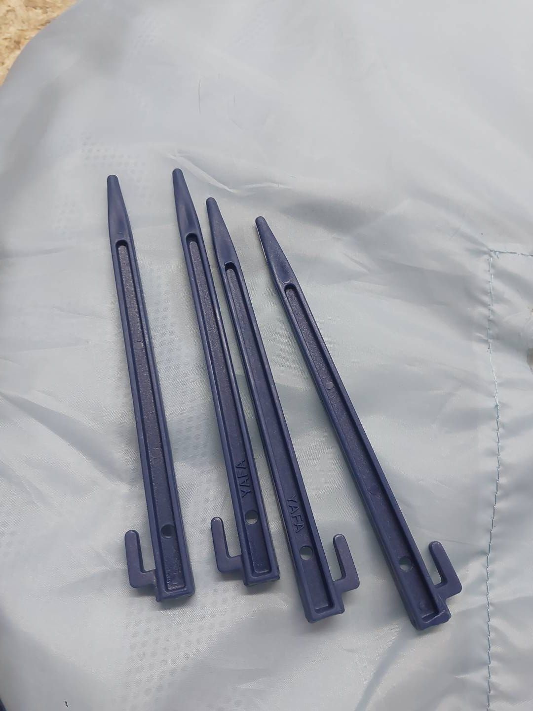 Stabilność: W zestawie znajdują się 4 kołki montażowe, które umożliwiają solidne przymocowanie namiotu do podłoża. Dzięki temu namiot pozostaje stabilny nawet przy silnym wietrze.