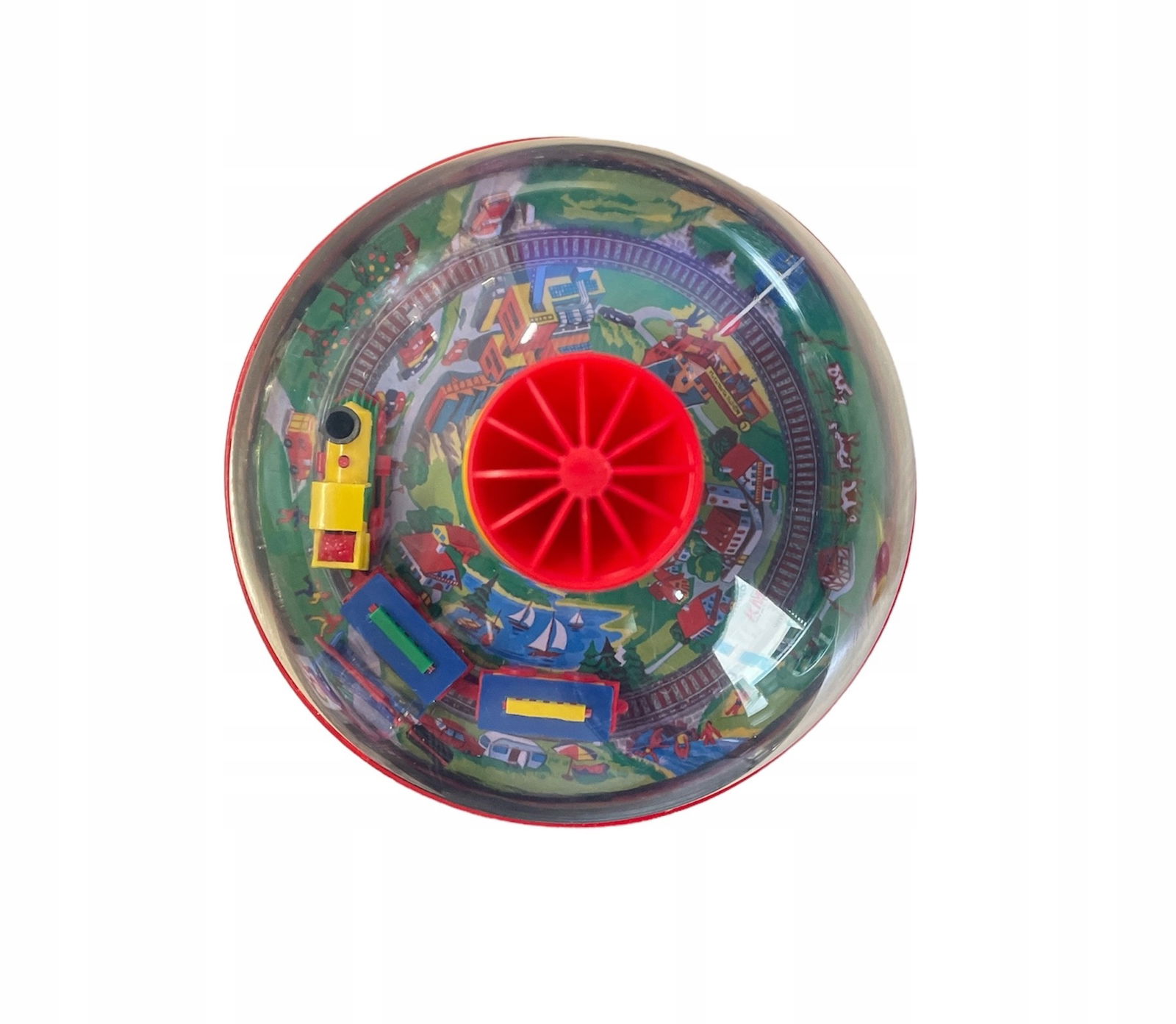 - Interaktywny Bączek: Wystarczy delikatnie nacisnąć górną część bączka, aby pociąg zaczął się kręcić w kółko, tworząc wirujące, kolorowe wzory. Zabawka jest prosta w obsłudze, co sprawia, że dzieci z łatwością mogą bawić się nią samodzielnie.