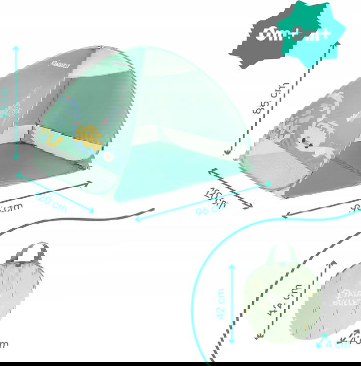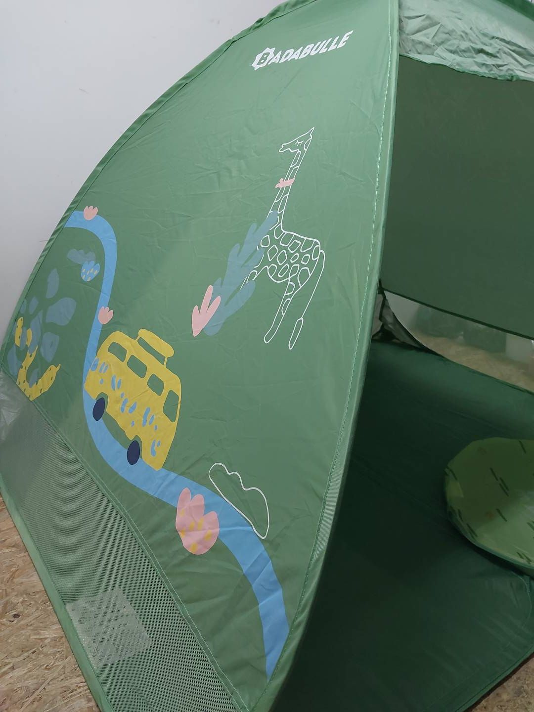 Namiot anty-UV chroni Twoje dziecko przed promieniami słonecznymi, wiatrem i piaskiem. Szeroki otwór i siatka po bokach zapewnia dobrą cyrkulację powietrza w namiocie, dzięki czemu dziecko nie będzie zbyt ciepłe.