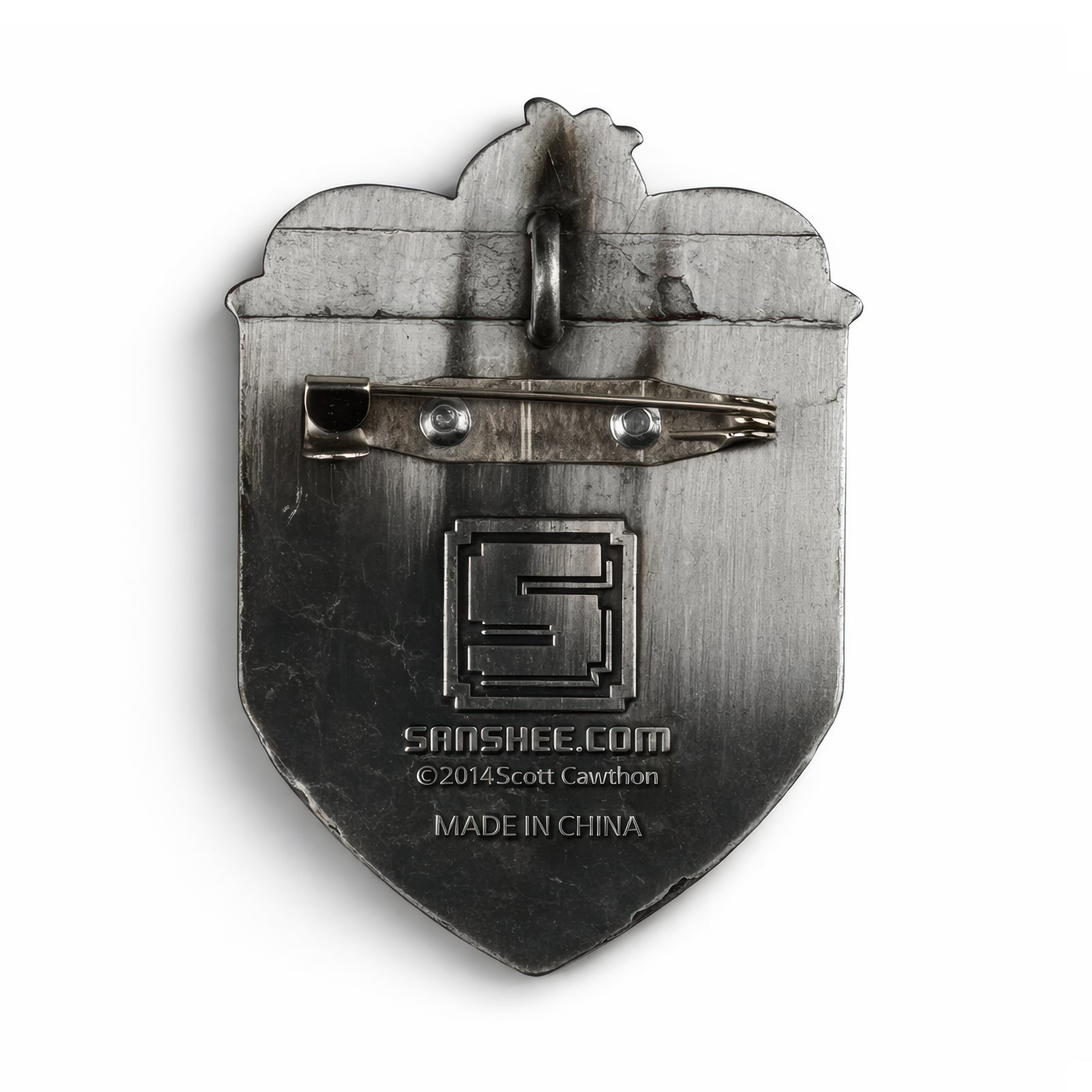 Kiedy światła migoczą, a kamery gasną, ta metalowa odznaka szepcze o nawiedzeniu pizzerii Freddy'ego. O wymiarach kompaktowych 5 cm, jest odlana z wytrzymałego metalu i wykończona błyszczącą emalią, która oddaje ikoniczny sylwetkę animatronika w surowych, północnych tonach. Zaczep z kolcami przypinki mocuje ją do kurtek, toreb lub stroju cosplay, a wyraźne grawerowanie przywraca niepokojący urok gry. Idealna dla zagorzałych kolekcjonerów FNAF, jako prezent dla współpracownika nocnej zmiany lub jako mrożący akcent na półce wystawowej.