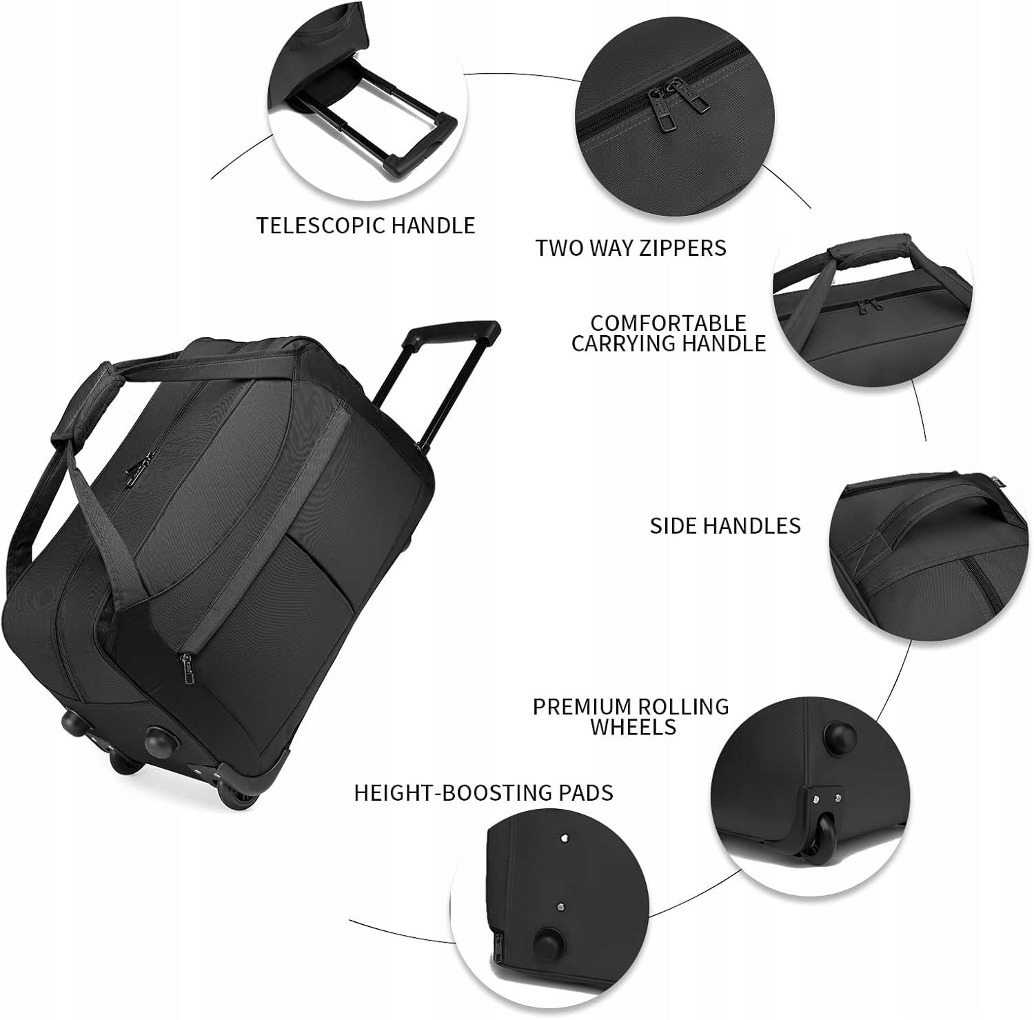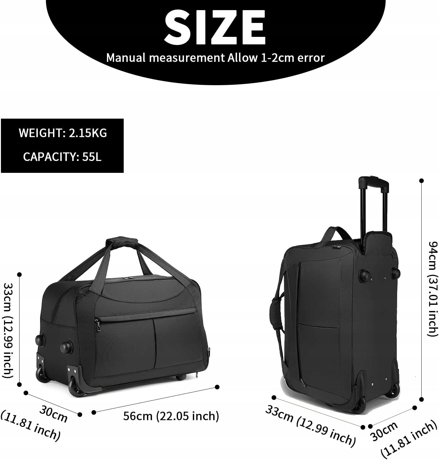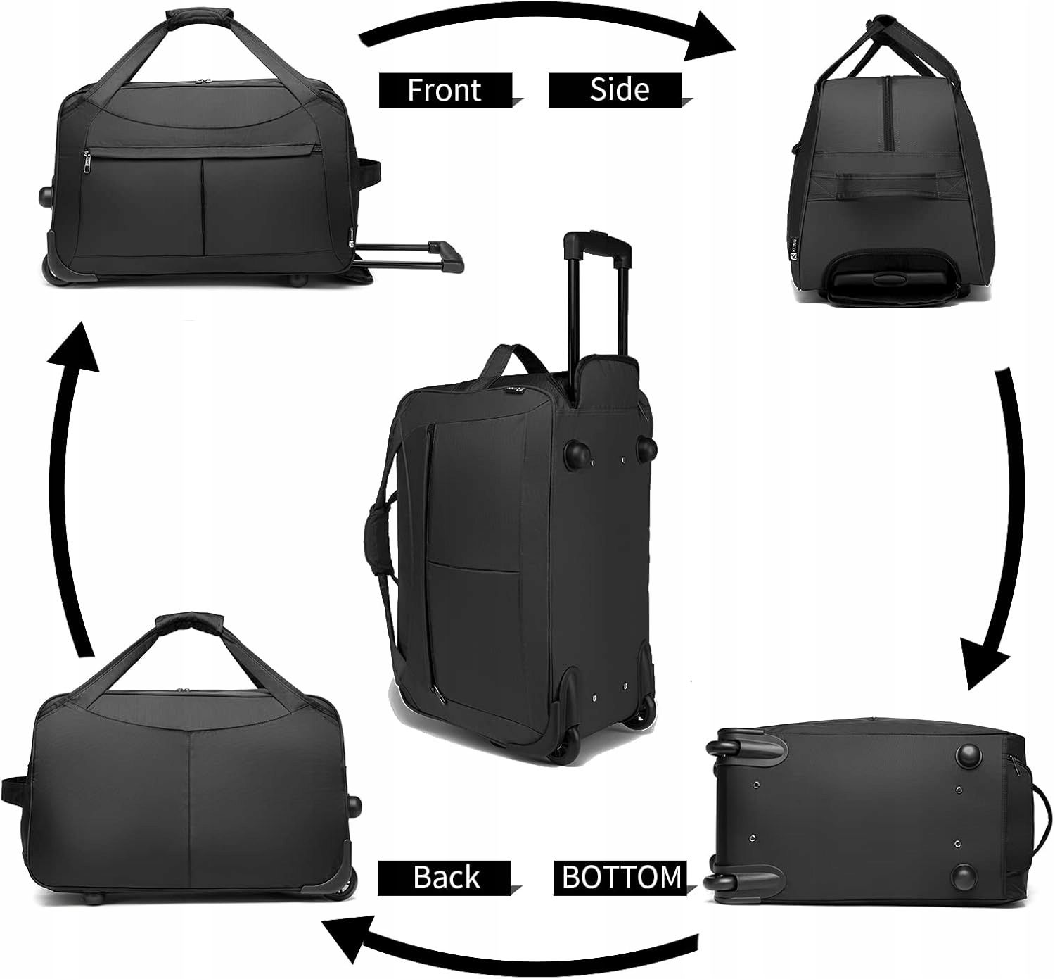 Bagaż Kono Podróżny czarny składany 2 kółka torba weekendowa 56 x 30 x 33