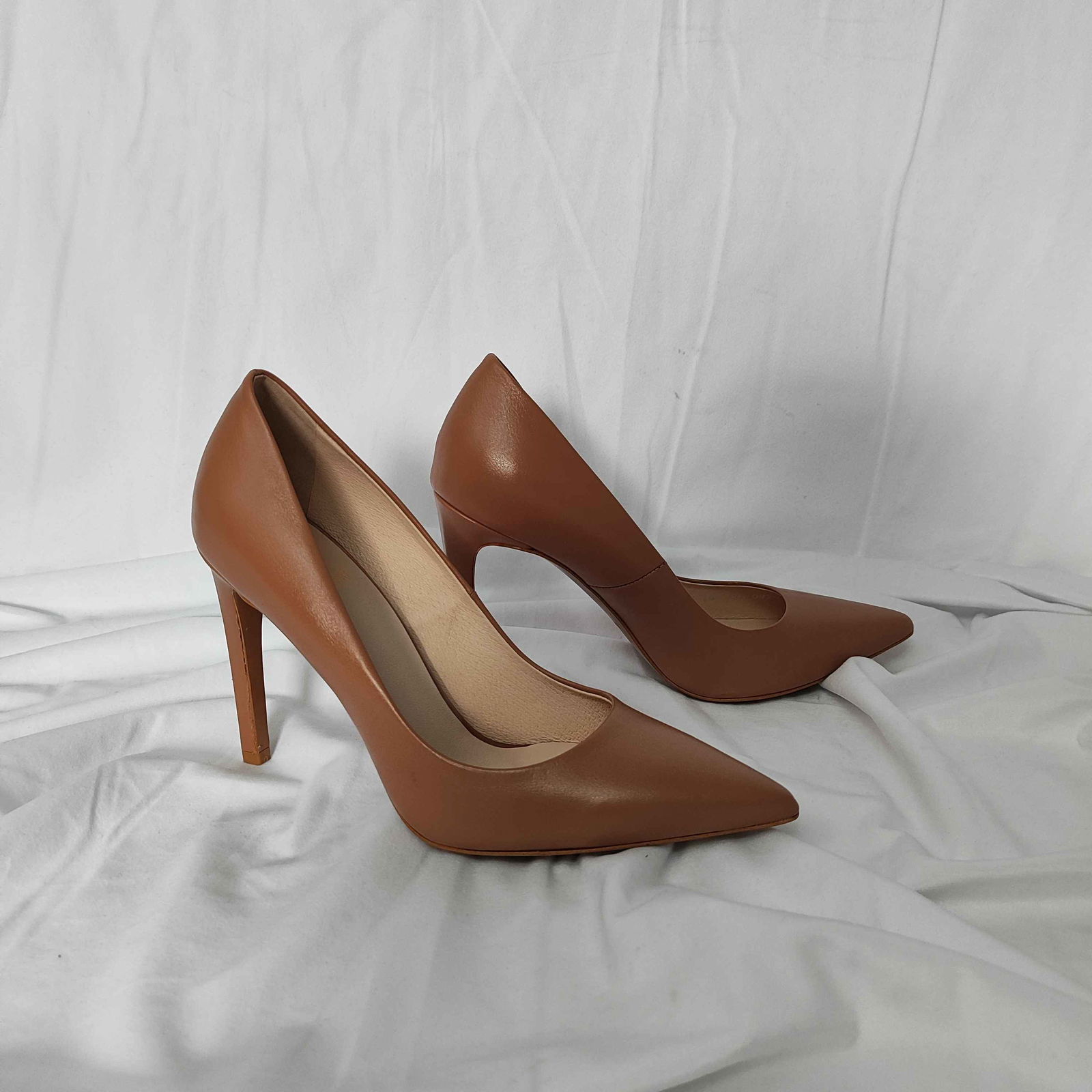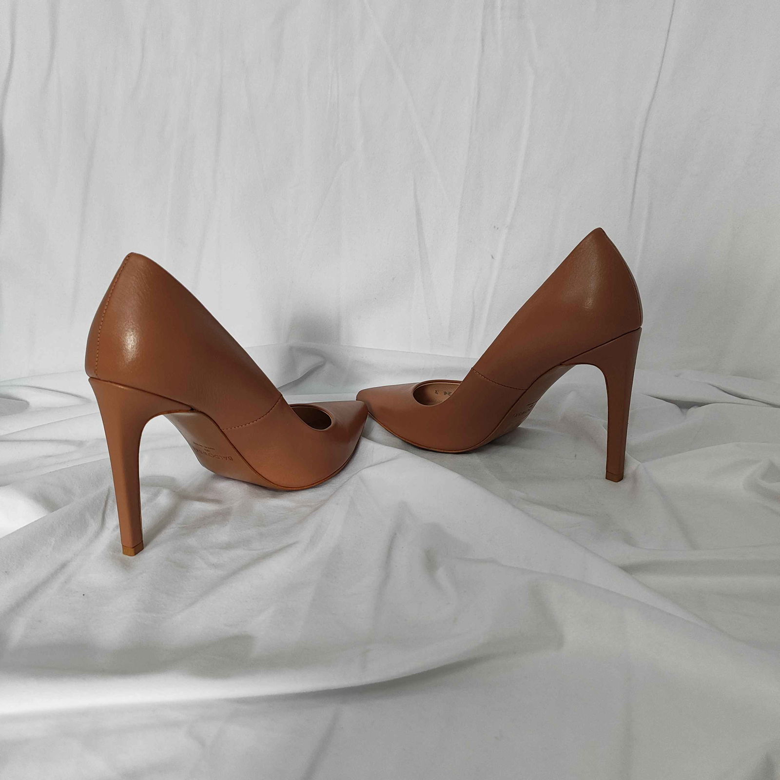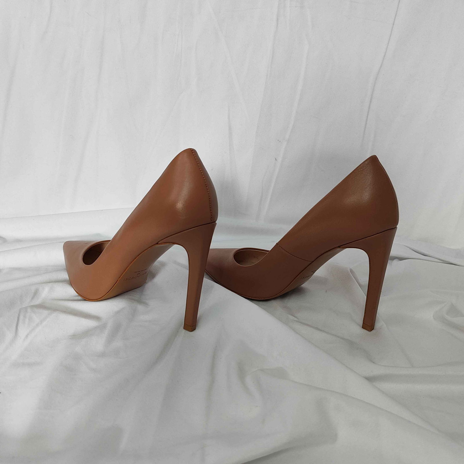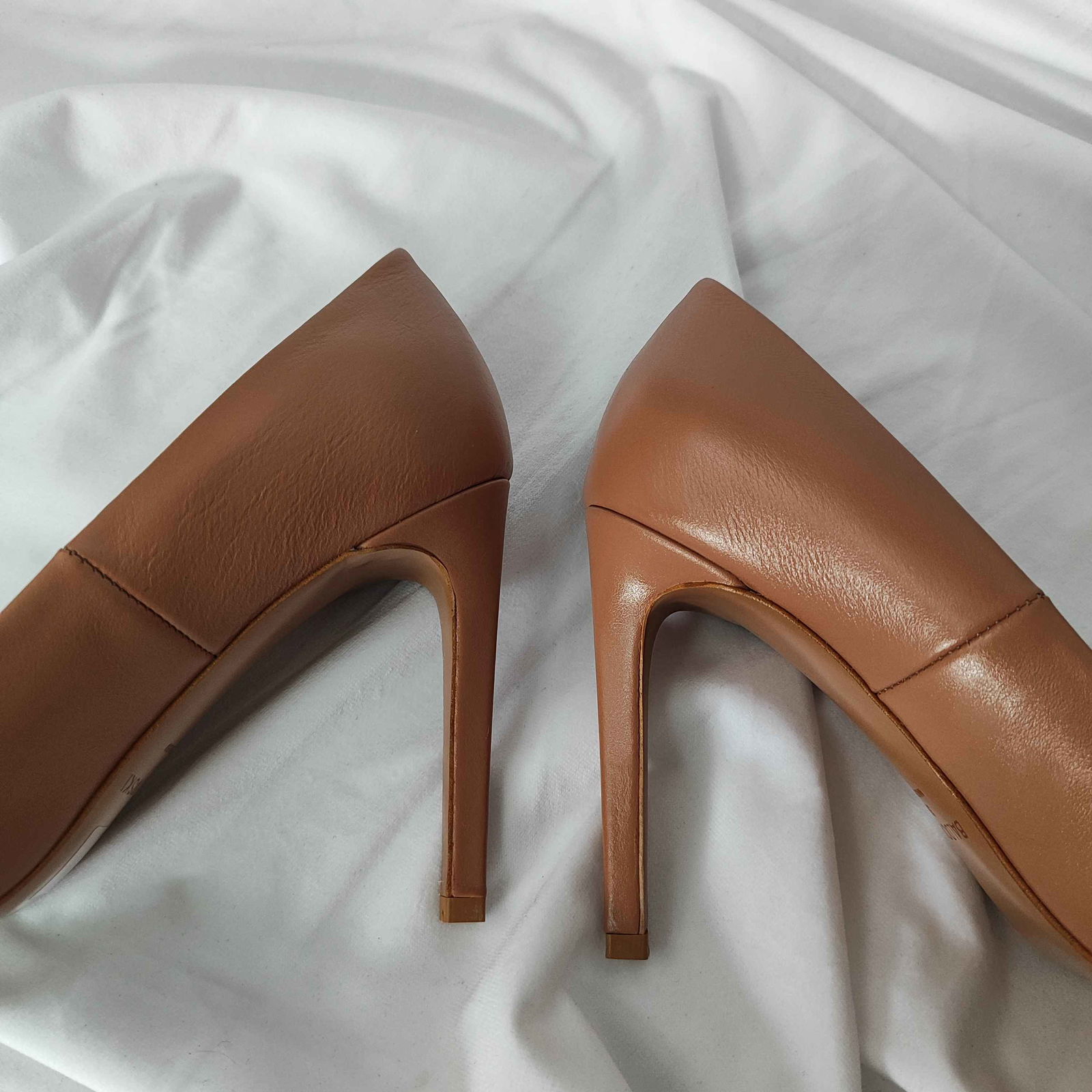 Buty nowe i nie używane. Mają małe pomarszczenia skóry oraz delikatne żółtawe przebarwienie (plamkę) na podeszwie jednego buta.
