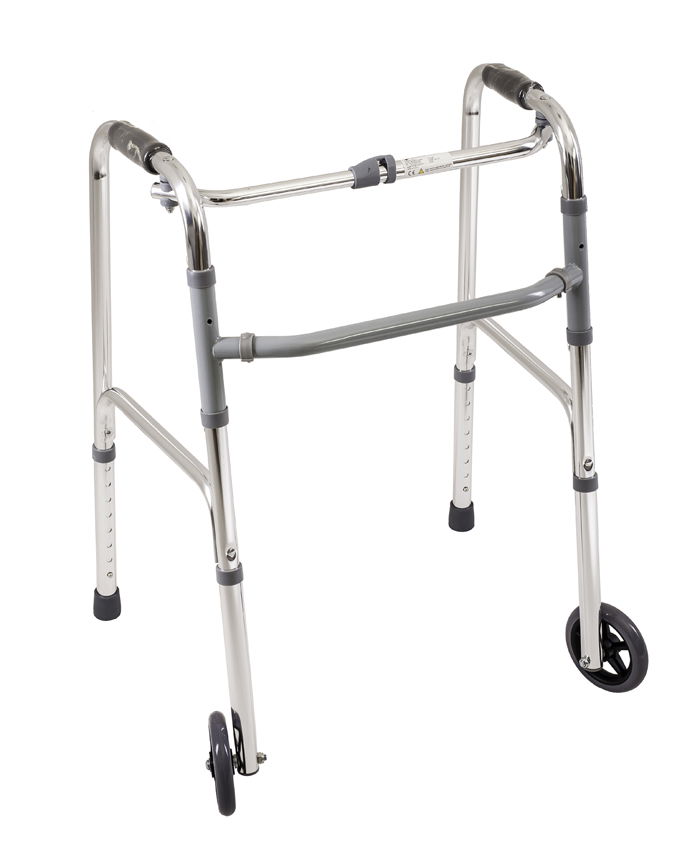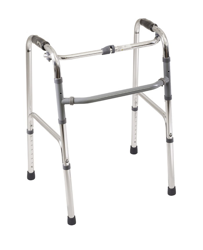 posiada 3 funkcje: przestawną, kroczącą i mobilną (z kołami) składany – łatwy do transportu wygodne rączki dla pewnego chwytu rama z eleganckiego, anodyzowanego aluminium antypoślizgowe, gumowe nasadki na wszystkich stopkach do wyboru zakończenie ze stopkami lub kółkamiprzyciski typu „C-clip” dla ułatwienia regulacji wysokości