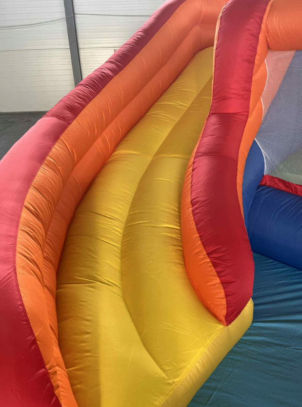 Produkt powystawowy, brak śladów używania. Ostatnie zdjęcia przedstawiają faktyczny wygląd produktu. Wszelkie zabrudzenia mogą wynikać z tego, że nadmuchaliśmy zamek w firmowym magazynie w celu sprawdzenia jego stanu.