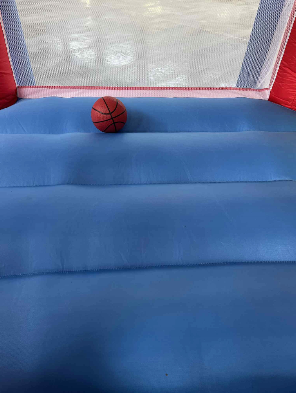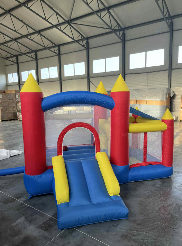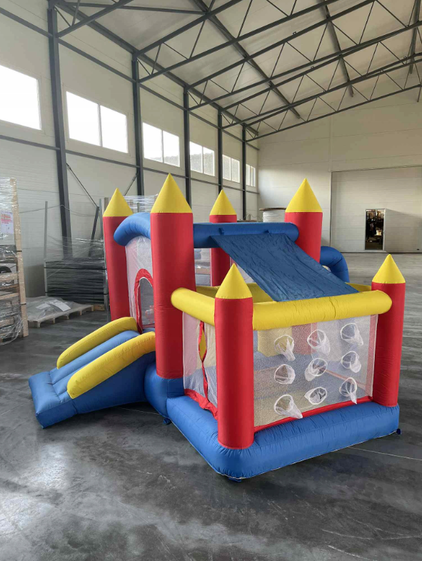 ❷ Ten dmuchany zamek ma nowy wygląd i rozsądny układ, z nadmuchiwaną trampoliną, basenem z piłeczkami, obręczą do koszykówki, bramką do piłki nożnej i zjeżdżalnią, co sprawia dzieciom mnóstwo frajdy.