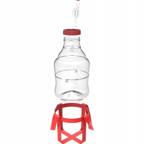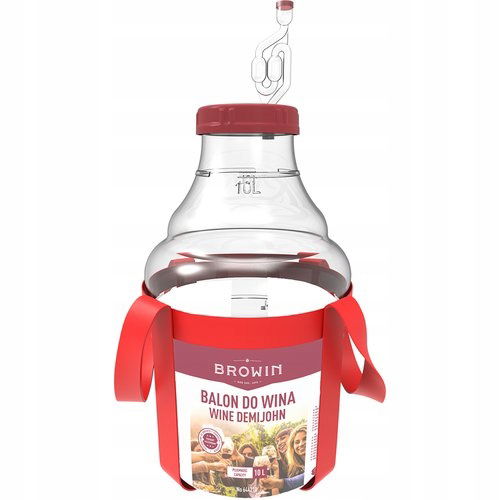 - Plastikowy balon 10 L do wina z zakrętką, korkiem, rurką fermentacyjną i szelkami do przenoszenia.