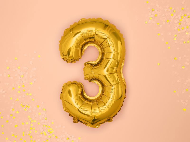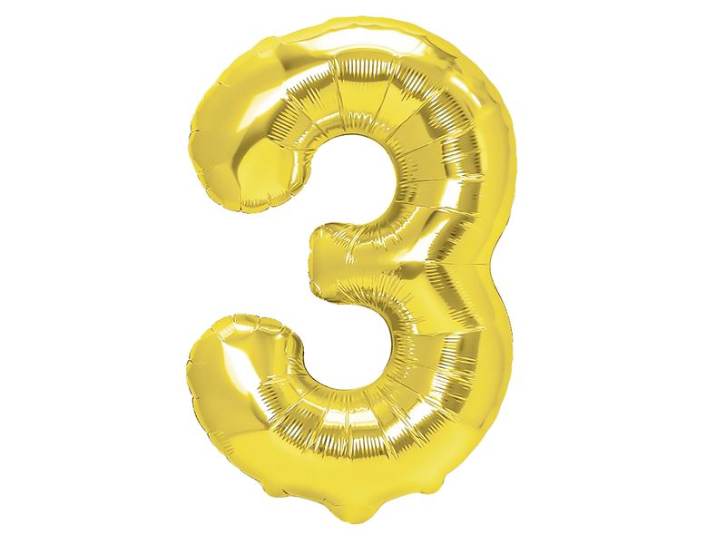 Balon foliowy "cyfra 3" o kolorze złotym. Balon foliowy liczba jest wielkości aż 40 cm. Cyfry nadają się idealnie na każde urodziny lub rocznicę, którą obchodzisz wspólnie z bliską Tobie osobą.