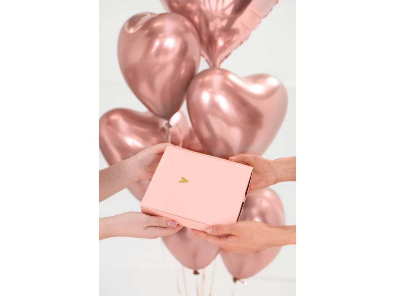 Balon foliowy o kolorze różowego złota w kształcie serca. Wielkości serduszka to ok. 45 cm (18 cali). Balon został wykonany z najwyższej jakości folii dostosowanej do napełniania helem dzięki czemu długo utrzymują się w powietrzu. Stosowany dla bliskich osób z okazji urodzin, Walentynek czy Dnia Kobiet lub Matki. Serce nadaje się na każdą okazję i idealnie dopasowują się w kompozycjach balonowych z innymi. Okaż małym gestem drugiej osobie swoją miłość.