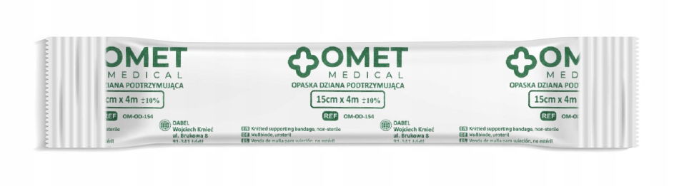 Opaska dziana podtrzymująca o wymiarach 15 cm x 400 cm. Bandaż wykonany z przędzy z włókien wiskozowych. Opaski nie należy stosować bezpośrednio na zranione miejsce. Produkt pojedynczo pakowany, opakowanie zawiera 25 bandaży.