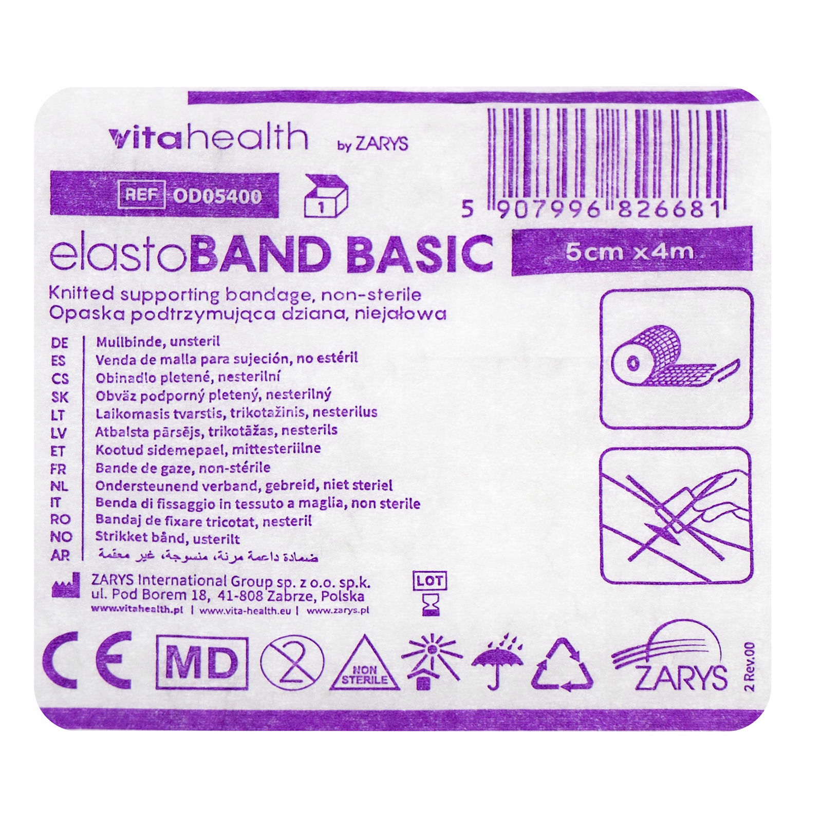 Opaska dziana podtrzymująca o wymiarach 5 cm x 400 cm. Bandaż wykonany z przędzy z włókien wiskozowych. Opaski nie należy stosować bezpośrednio na zranione miejsce. Produkt pojedynczo pakowany, opakowanie zawiera 10 bandaży.