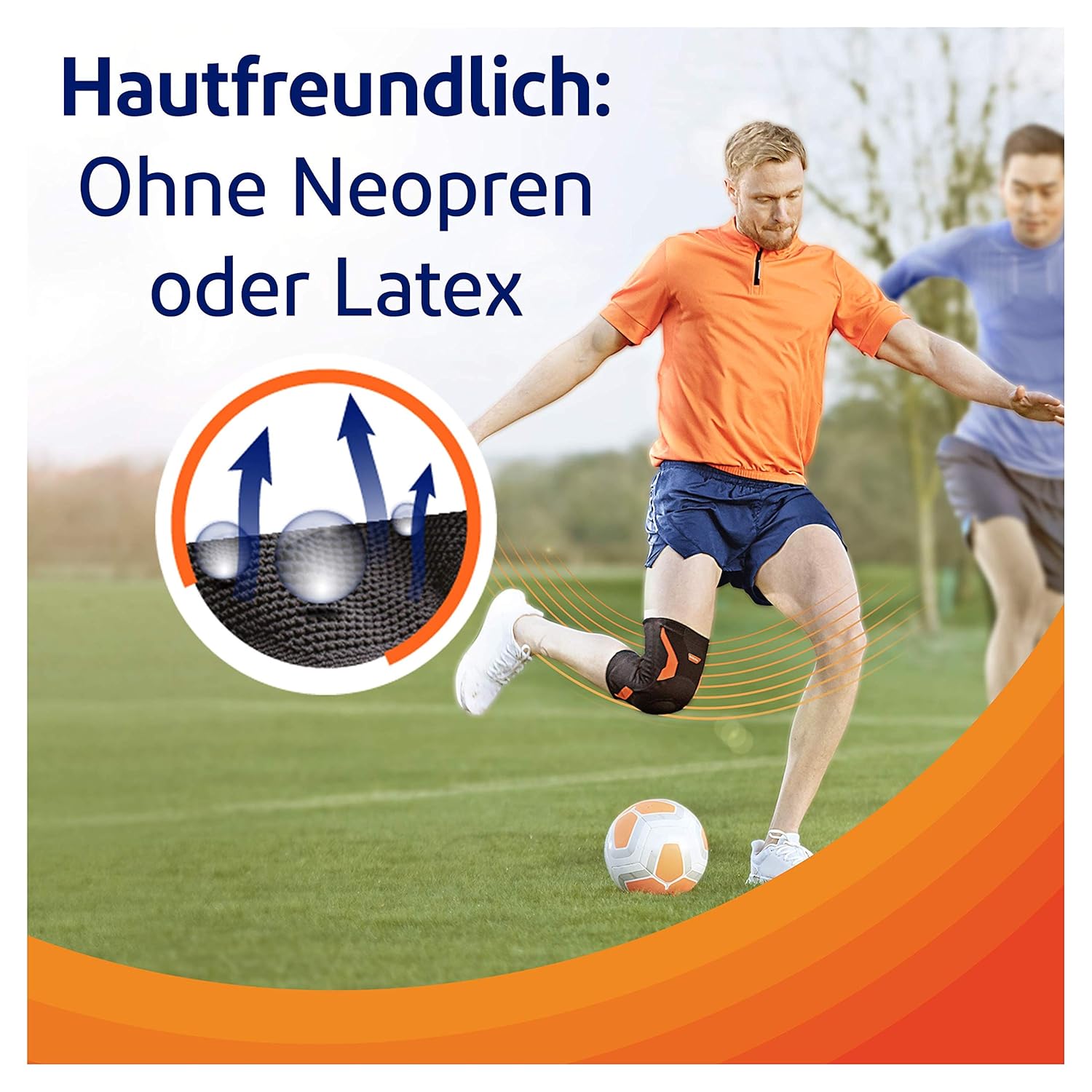 Oddychająca, przyjazna dla skóry tkanina, bez neoprenu i lateksu. Opatentowana powierzchnia antypoślizgowa zapewnia bezpieczeństwo i komfort podczas codziennych aktywności.