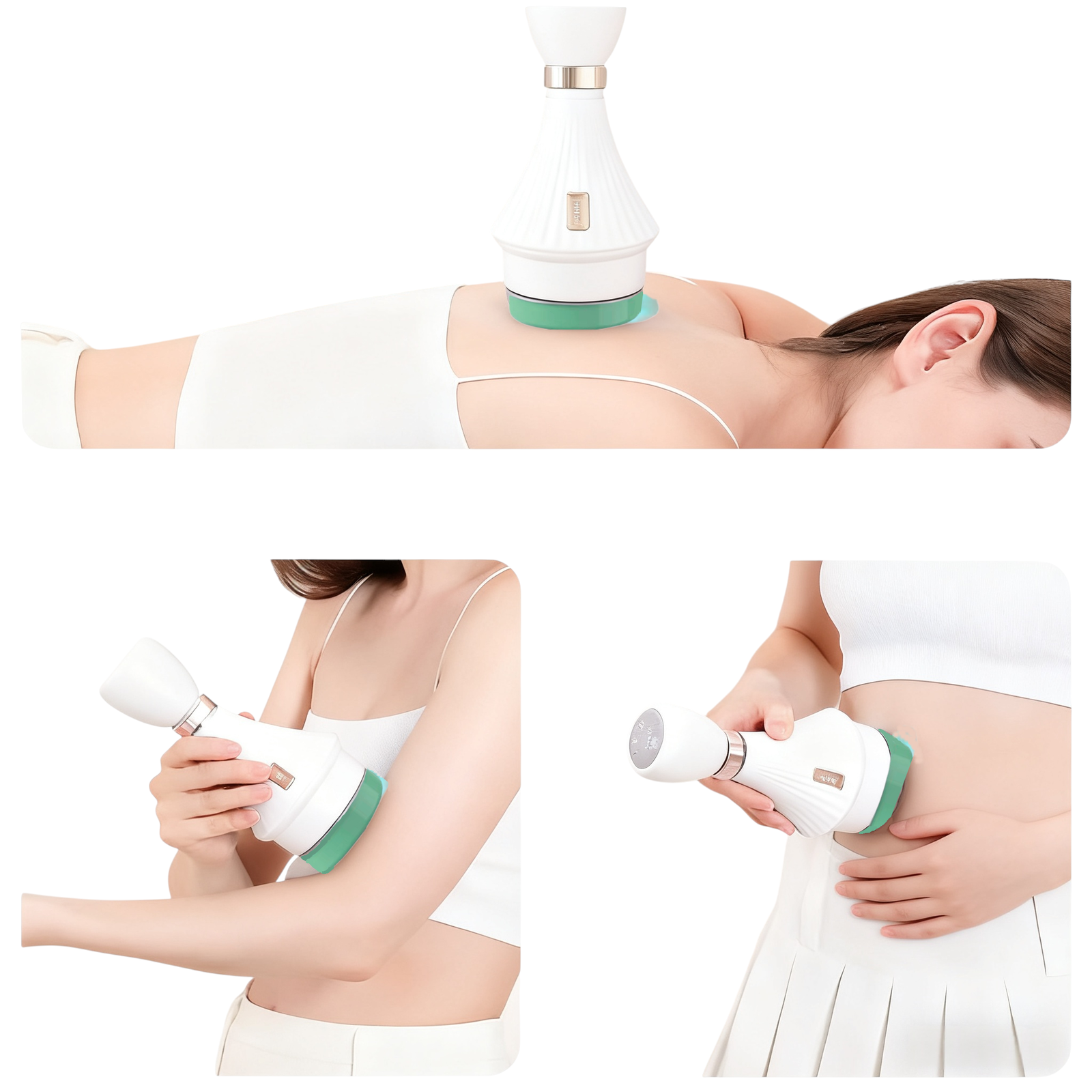 ✅ Gładka powierzchnia głowicy ułatwia przesuwanie się po ciele, zapewniając komfortowy nieinwazyjny masaż