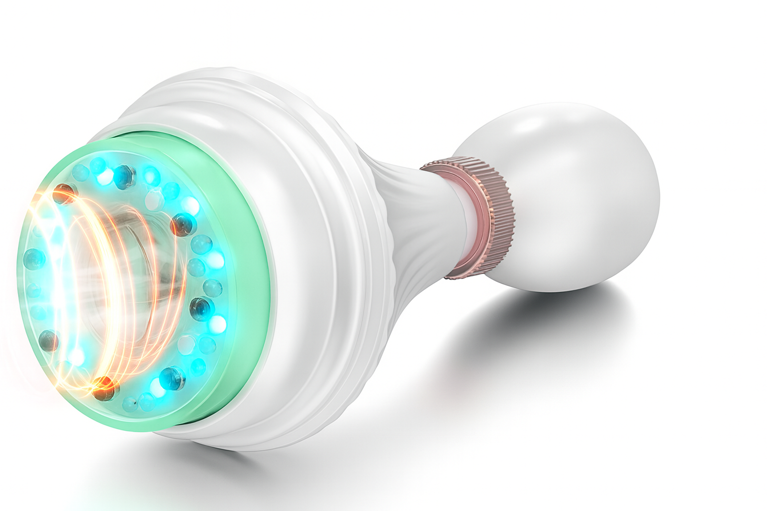✅ System próżniowy w centrum głowicy - generuje podciśnienie, które działa jak tradycyjna bańka chińska - ujędrnia skórę i wspiera redukcję cellulitu