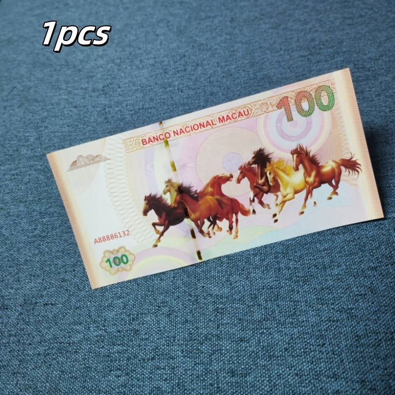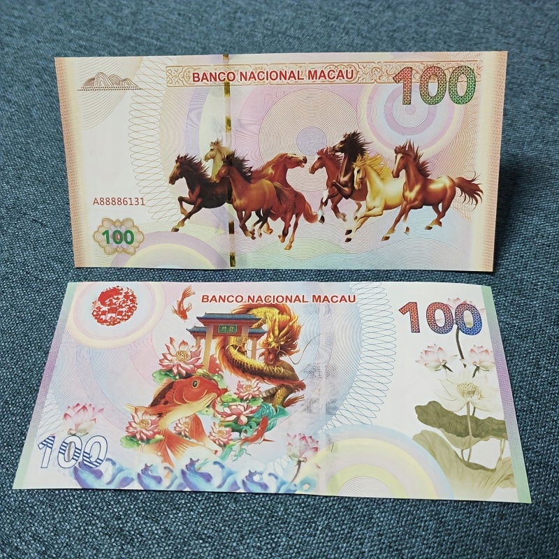 Banknot 100 Pataca Macau motywem koni i chińskiej symboliki UV blikshop