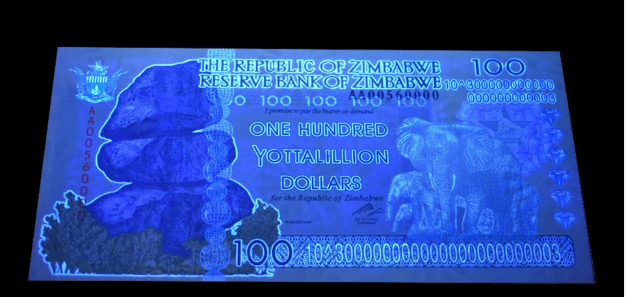 Banknot Kolekcjonerski 100 Yottalillion Dolarów Zimbabwe UV UNC blikshop-pl