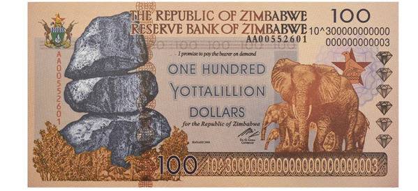Przedmiotem aukcji jest wyjątkowy banknot o nominale 100 Yottalillion Dolarów wyemitowany przez Rezerwowy Bank Zimbabwe. Ten niezwykły banknot jest świadectwem jednego z najbardziej drastycznych przypadków hiperinflacji w historii współczesnej. Pochodzi z okresu, gdy gospodarka Zimbabwe borykała się z ogromnymi problemami, co doprowadziło do drukowania banknotów o niewiarygodnie wysokich nominałach. Jest to fascynujący kawałek historii gospodarczej, idealny dla kolekcjonerów i osób zainteresowanych numizmatyką.