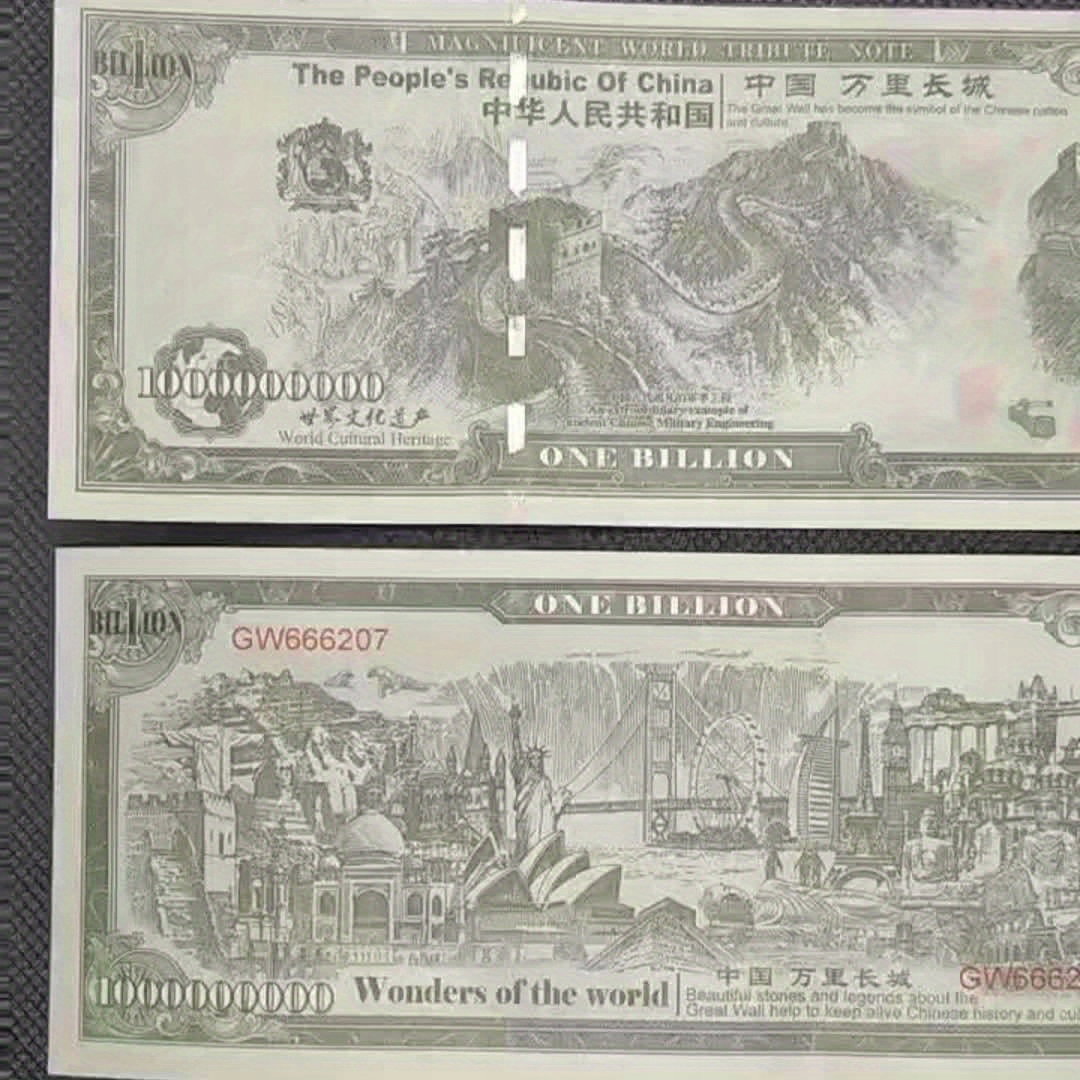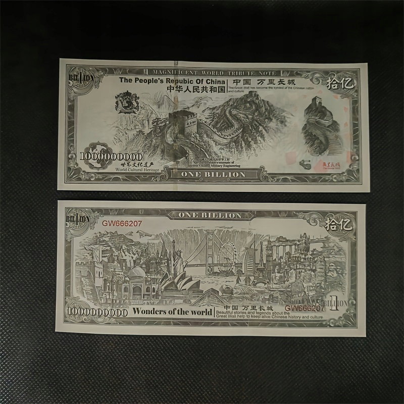 Unikatowy banknot kolekcjonerski "Magnificent World Tribute Note - The People's Republic Of China". Przedstawia Wielki Mur Chiński, wpisany na listę Światowego Dziedzictwa UNESCO.