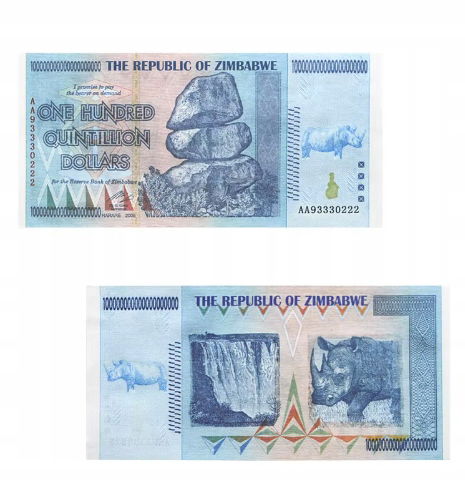 Banknot Zimbabwe 100 Kwintylionów Dolarów Unikat UV blikshop
