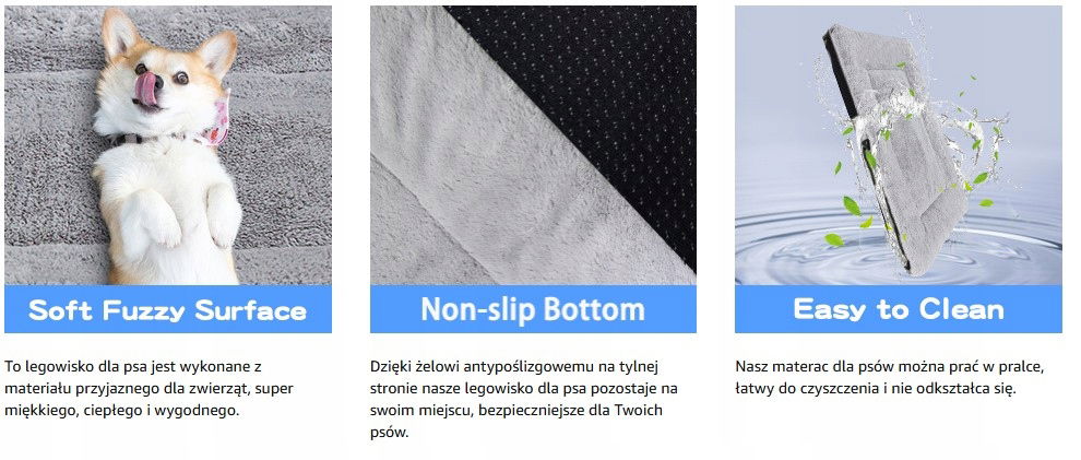 Antypoślizgowy i można prać w pralce - koc dla psa nadaje się do prania jest wyposażony w antypoślizgowy spód, który skutecznie utrzymuje maty dla psów na swoim miejscu.