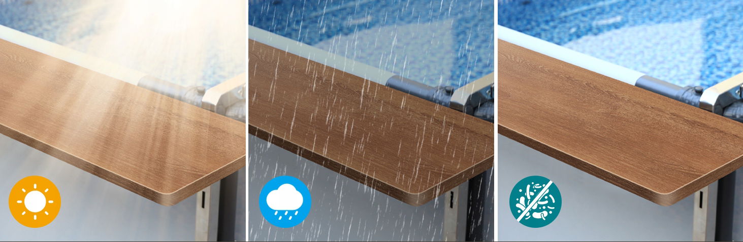 - ✴️【Wytrzymały i wodoodporny blat z żywicy】 Stolik przy basenie. Wykonany z wysokiej jakości naturalnej żywicy, imituje elegancki wygląd drewna, a jednocześnie charakteryzuje się doskonałą wodoodpornością i trwałością. Nawet przy częstym użytkowaniu w wilgotnym otoczeniu basenu, zachowa dobry stan przez długi czas. Niezależnie od tego, czy chodzi o imprezy przy basenie, czy codzienne pływanie, jest trwały, co zmniejsza obawy użytkowników o uszkodzenie produktu i konieczność jego wymiany.