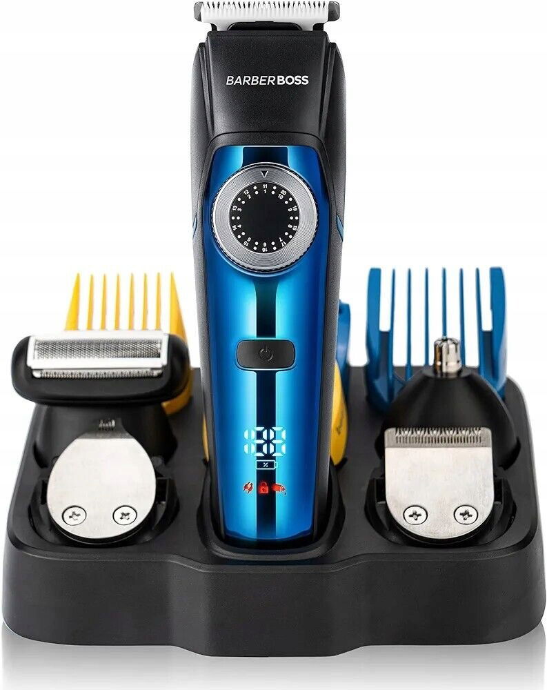 BARBERBOSS LCD golarka męska do brody i włosów, niebieska, zestaw do 60min